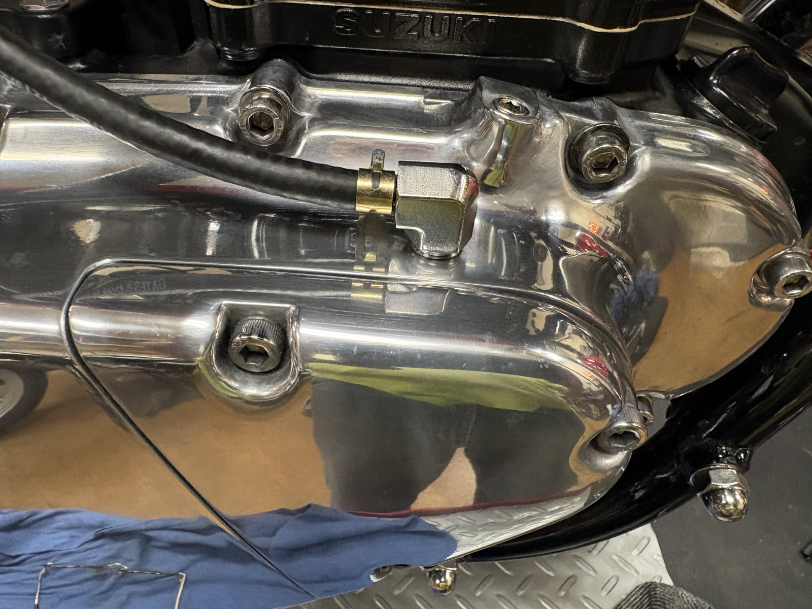 That spare filter cover has turned into a sweet tool Dave. Do you have any concern about unfiltered oil going to your top end. I personally don't see it as much of an issue. The connection is at the top of the filter housing and flow through that small fitting will be low, so it is unlikely that any metal particles will find their way into the hose.