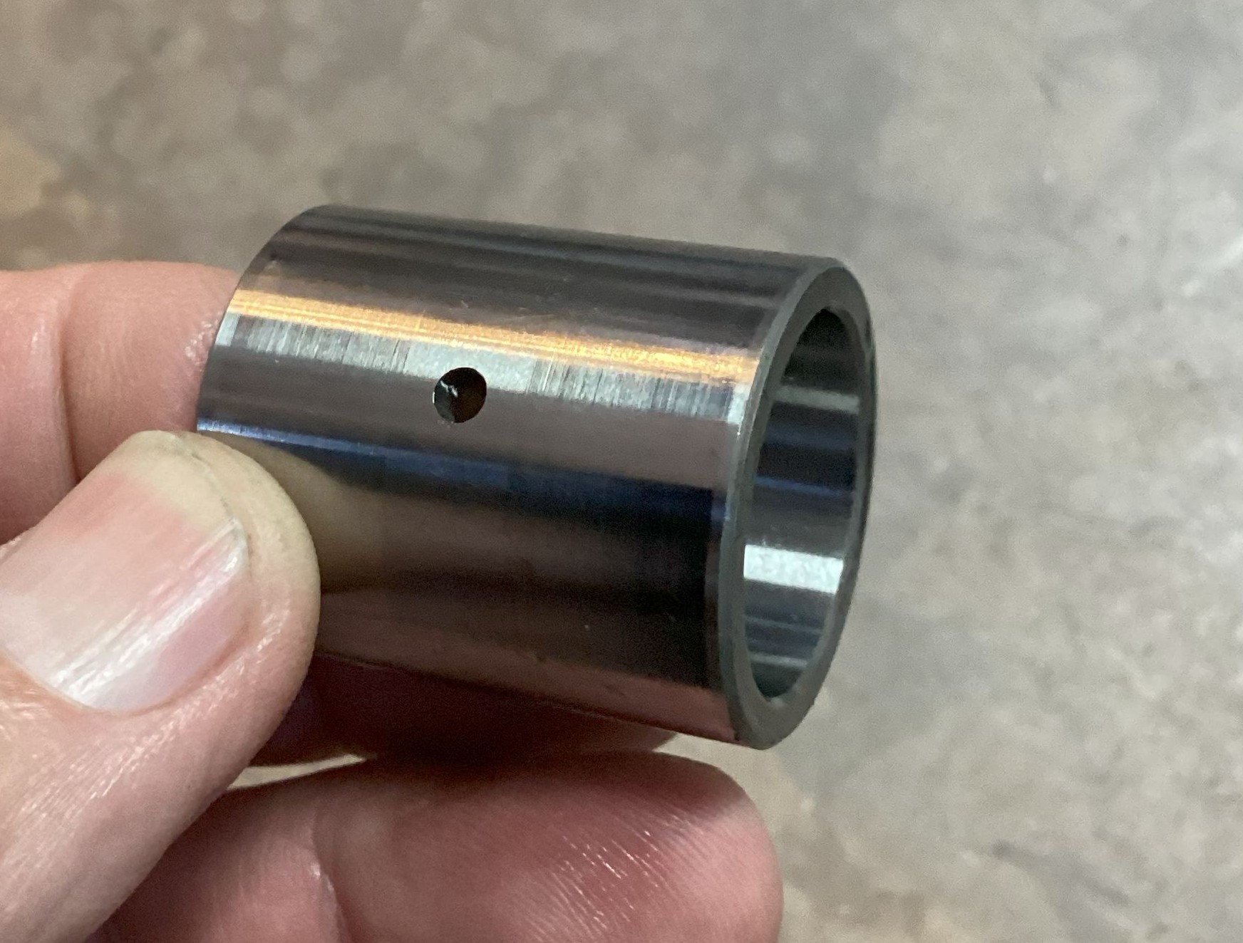 The sleeve that runs in the bronze bushing was in great condition. No bronze deposits on the sleeve, so I am pretty sure that the grabby squealy problem is related to the basket binding on the sleeve. The wave washer has fixed that.