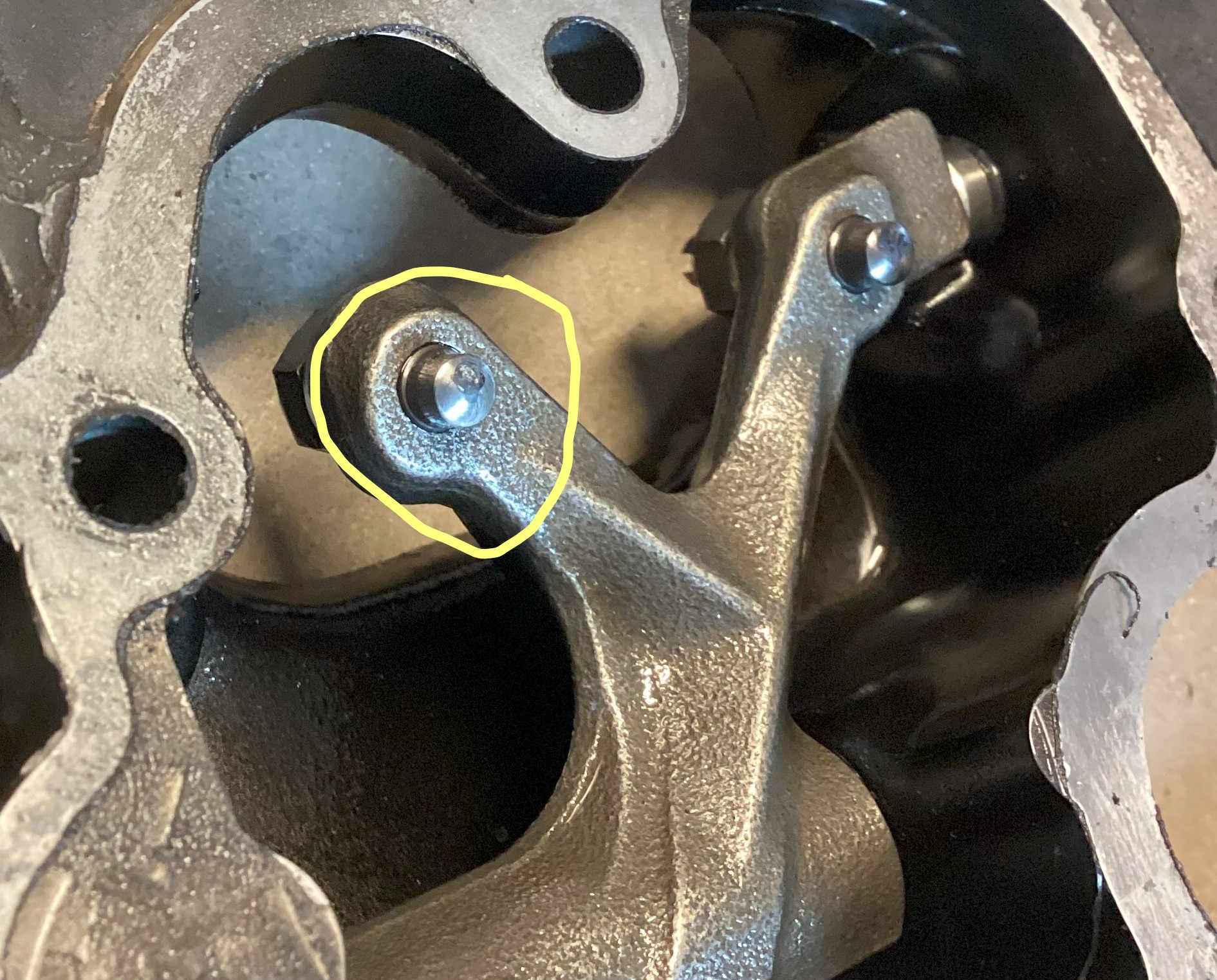 The right-hand exhaust valve adjuster screw had some pitting on the tip.