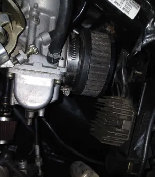 Previous owner ditched the air box in favor of this air filter on the back of the carburetor. It is overdue to be taken off for cleaning but the top of the filter is pressed against bike frame. Is there any way to remove this filter without disassembling the carb? Can provide more pics if needed.