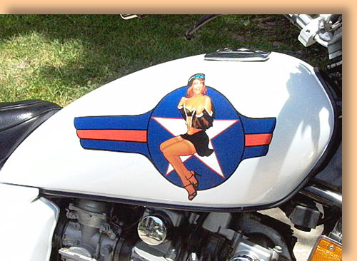 There's a company out there (the name of which escapes me ...) that produces tanks decals in the form of replica "Nose-Art" from WW2 aircraft; the kind with 1940's pin-ups ... these look super unique ... but are probably better suited to Bikes with a flat-black or olive-drab paint job ...