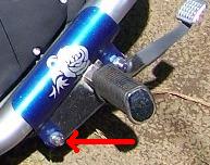 The bolt that goes all the way through, but that also holds the first heat shield in place, and the pedal. There is a little bit of oil dripping from the bolt on the other side of the bike.