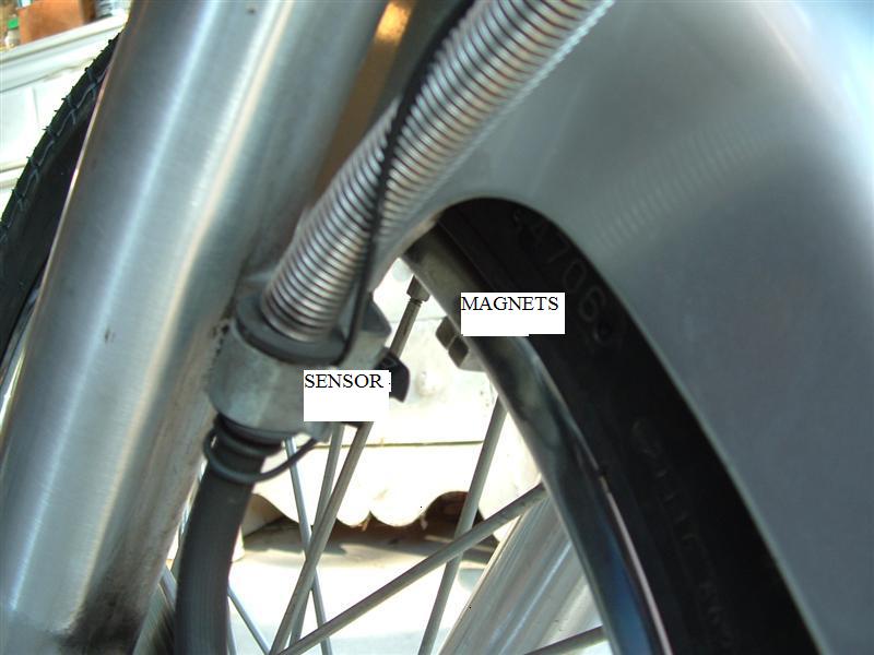 Trick to putting in a electric device that is wired is to use a supermagnet on the top surface of your rim with the pick up coil mounted on the underside of your fender (there's a mount flange there that is all nice and neat and out of sight).  Doing this trick means the stock length of wire they give you works out perfectly -- you don't need to add wire to it.