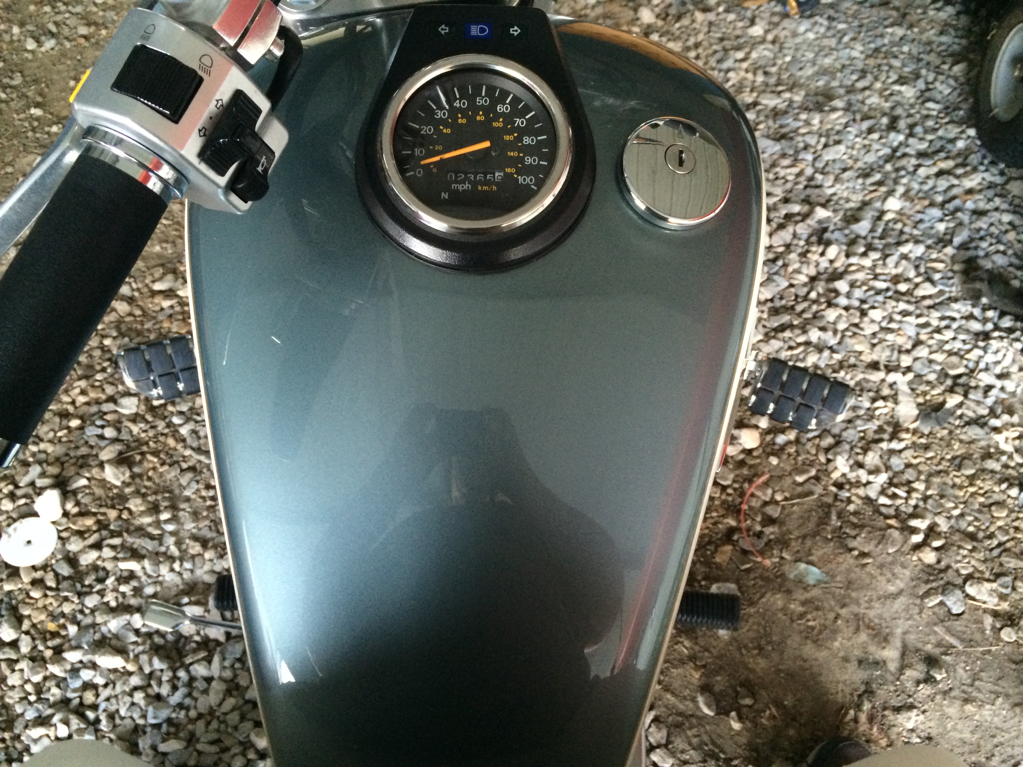 Here's a pic from up top, with a bonus reflection of me in the shiny gas tank!