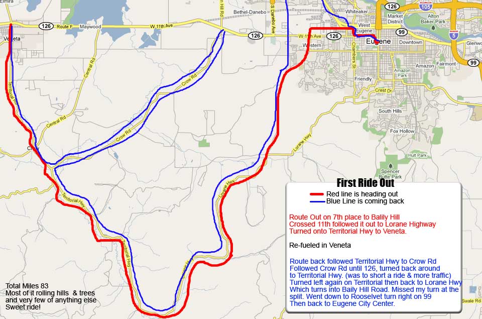 Pic below shows the route I went. In Veneta I ran out of gas...was like oh Sh!t...then I recalled the reserve.