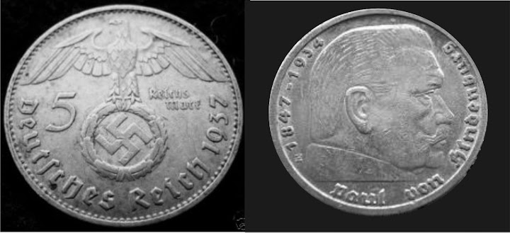 Id like a pic of that 5 mark piece. I like old coins. I like new coins. I like folding money,, crap,, Im Unca Scrooge McDuck!