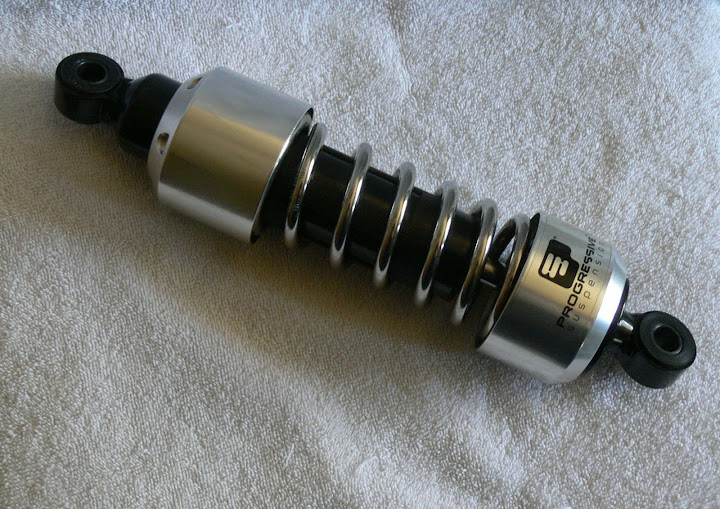 Serowbot, you will be pleased to note that these are the progressive replacements for the 800cc M50. They are 11.5'', which will give me just a little more travel (2.5 inches) without sitting up too tall. They look different than the 412 series, with the pre-load adjustment at the top. The spring covers look to be machined aluminum. The spring decal clearly states that the spring is a 03-1313 which equates to a 440-4201B/C.