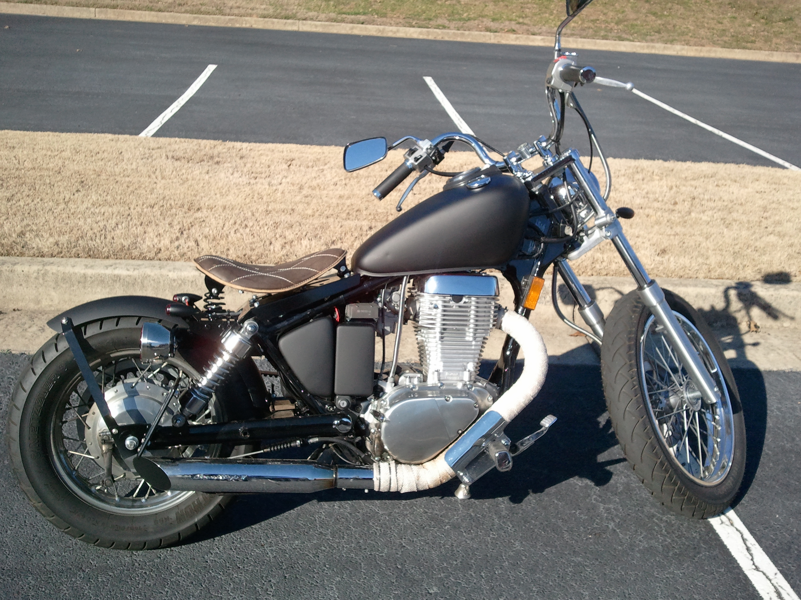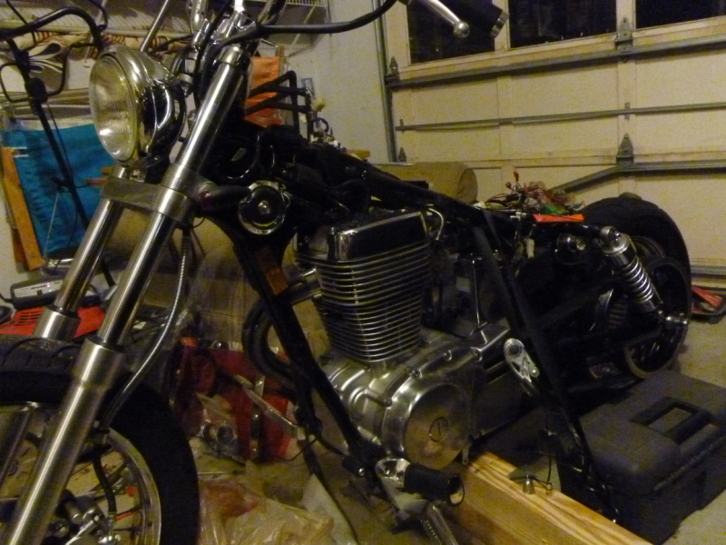 The current look - i'm painting the tank....wiring is all done, turn signals have been replaced, crash bar and windshield removed, axle replaced etc.