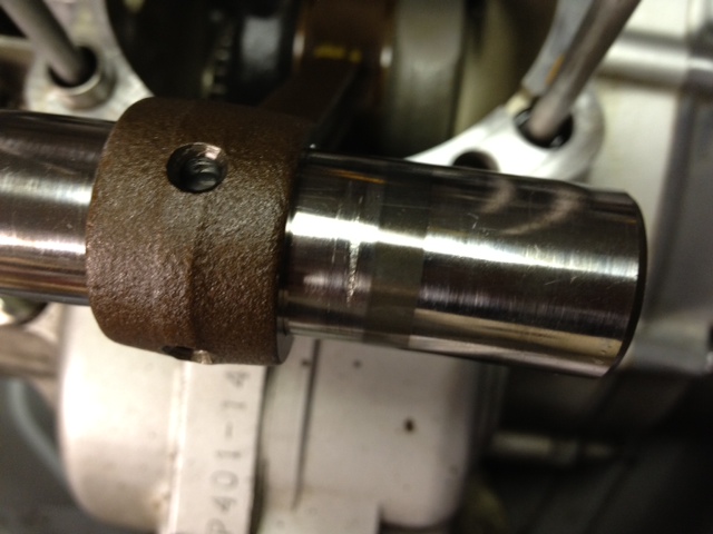 So I got it all apart and had my engine buddy take a look.  All is in spec tolerance, but, I noticed the pin had a bit of friction when in the rod.  Closer inspection revealed a pitting area that seems to cause some binding in the pin/rod connection.  It seems the pin could bind or at least have resistance in the rod which I'm assuming could make the whole piston wear more heavily while in motion.  You can see the wearing groove in the pics.  Also, does ART make the stock pistons or is this an aftermarket piston?  I'm going to look at a used motor tomorrow.  I don't think this wear would cause the knocking sound, but, it could indicate that something more is going on and splitting the cases just seems impractical for the cost and effort and the risk that it never gets back together as good as factory anyway.  Bummer.  I will not be defeated... Grin    also see the pics on the following page.
