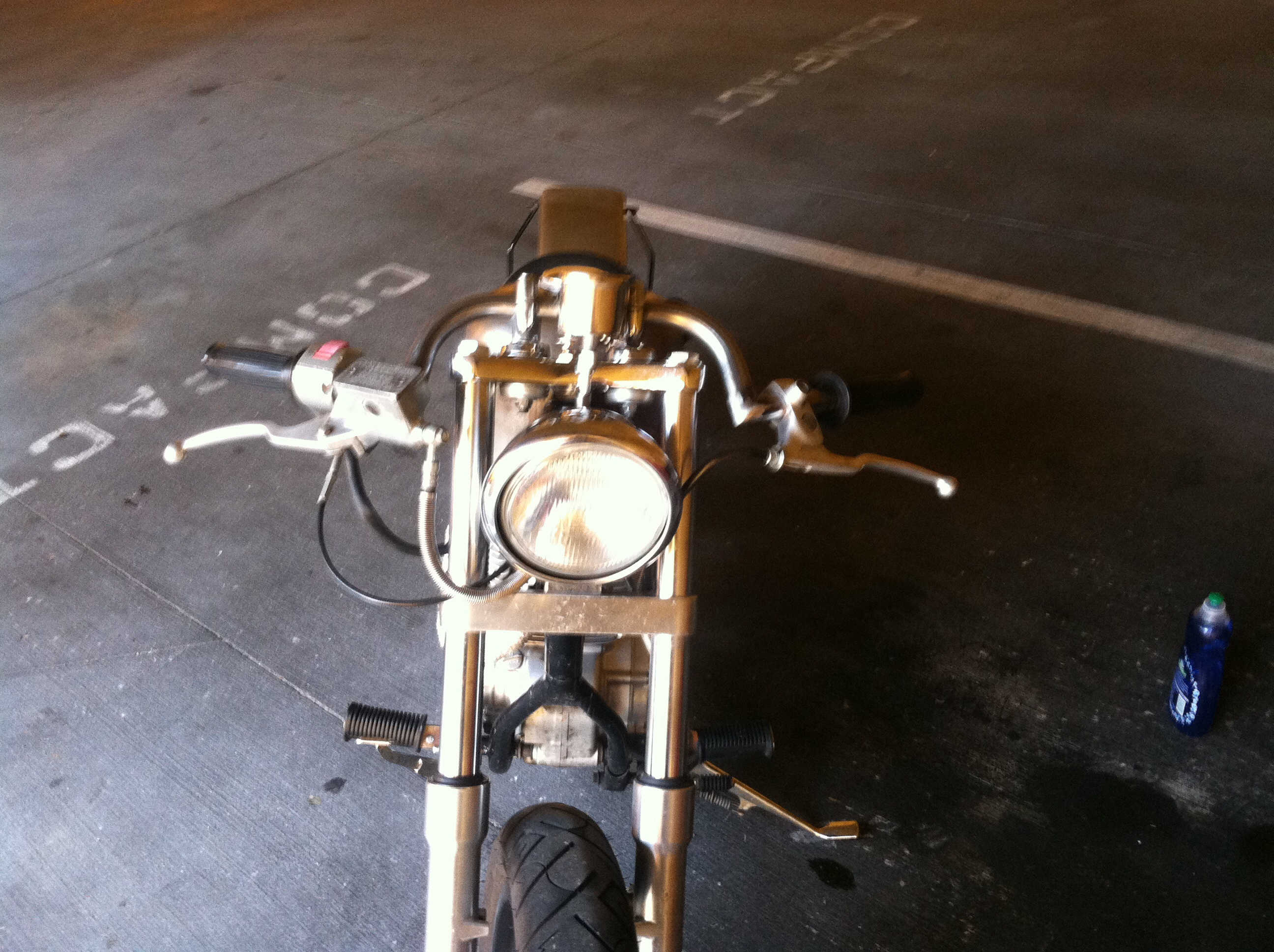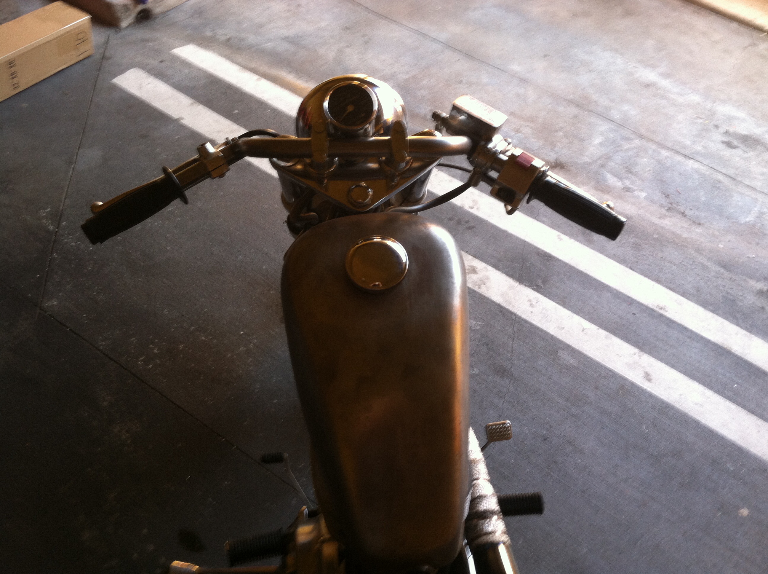Air-Tech is a good source for clubmans and clip-ons, I've bought fairings and seat material from them also. These bars are 28'' wide 5 deg. backsweep with adjustable stops (no fork lock courtesy of previous owner)