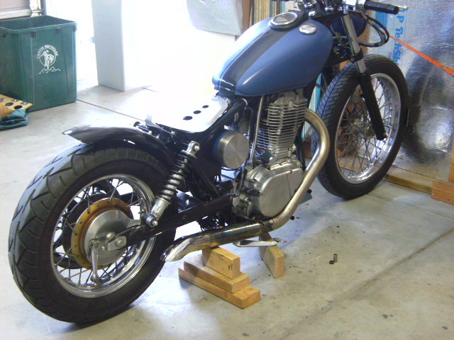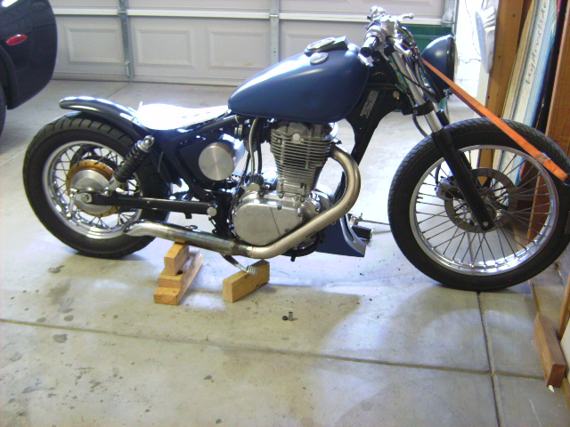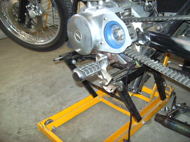 I've also been thinking about moving my pegs back to a standard bike position. I purchased left and right pegs, plates, splined lever, brake pedal etc. from a guy parting out a LS40. I plan to rework them so that they will fit roughly where Skeebo has his. I haven't even started to think out the details yet. I would like to see pictures showing the details of how Skeebo mounted his.
