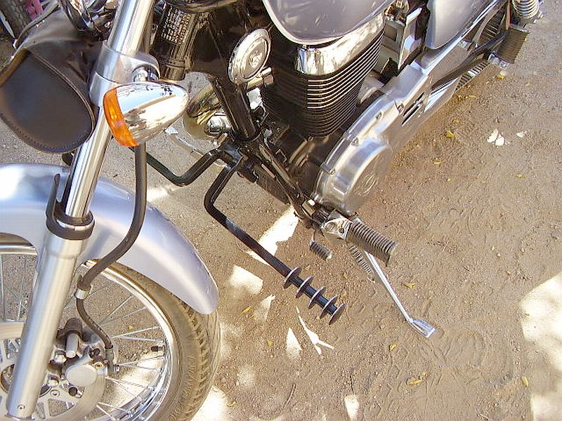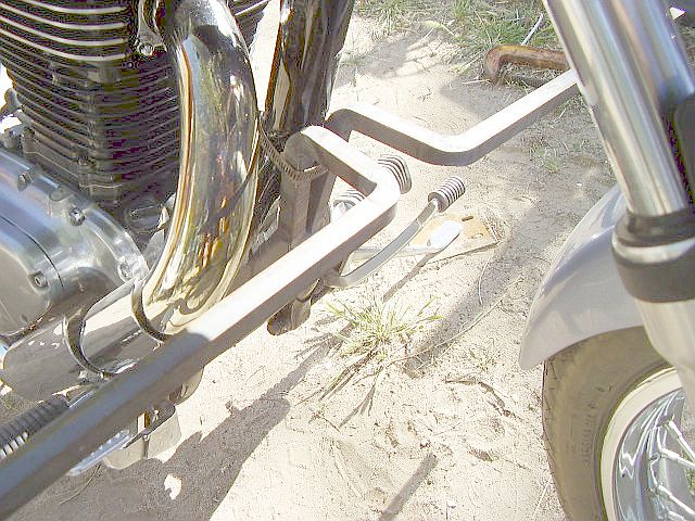 well boys ... being a welder/fabricator and a avid motorcyclist for over forty years, for starters, these bars, witch is hard to see from the photos barely protrude any further out than the stock forward controls, also , they are designed to give and bend if the need be. but to be honest, having production road raced, my last concern at falling down at a speed that would actually have enough enertia to "flip" the bike, would be the bike flipping and getting damaged Grin  falling down on its side, with the weight of the bike would simply bend the bars upward, and a hit from the front would bend them back, as far as the ends go , i plan on welding (6) 5/8 x 1 1/2 flat washers 5/8 apart for pegs (chromed) with a larger one at each end to keep a boot from sliding off, in any event ill supply photos when its all complete, and a pic of the drag shoot off the sissybar to slow the spinning... Roll Eyes