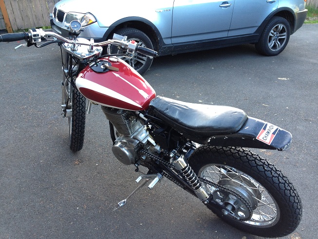 And the positioning is great. That old seat is a little narrow to say the least, but, I was concerned the pegs were too high and rearset etc, not a problem at all for me at 5'10". Turns real nice too with the mega bars. Cheers