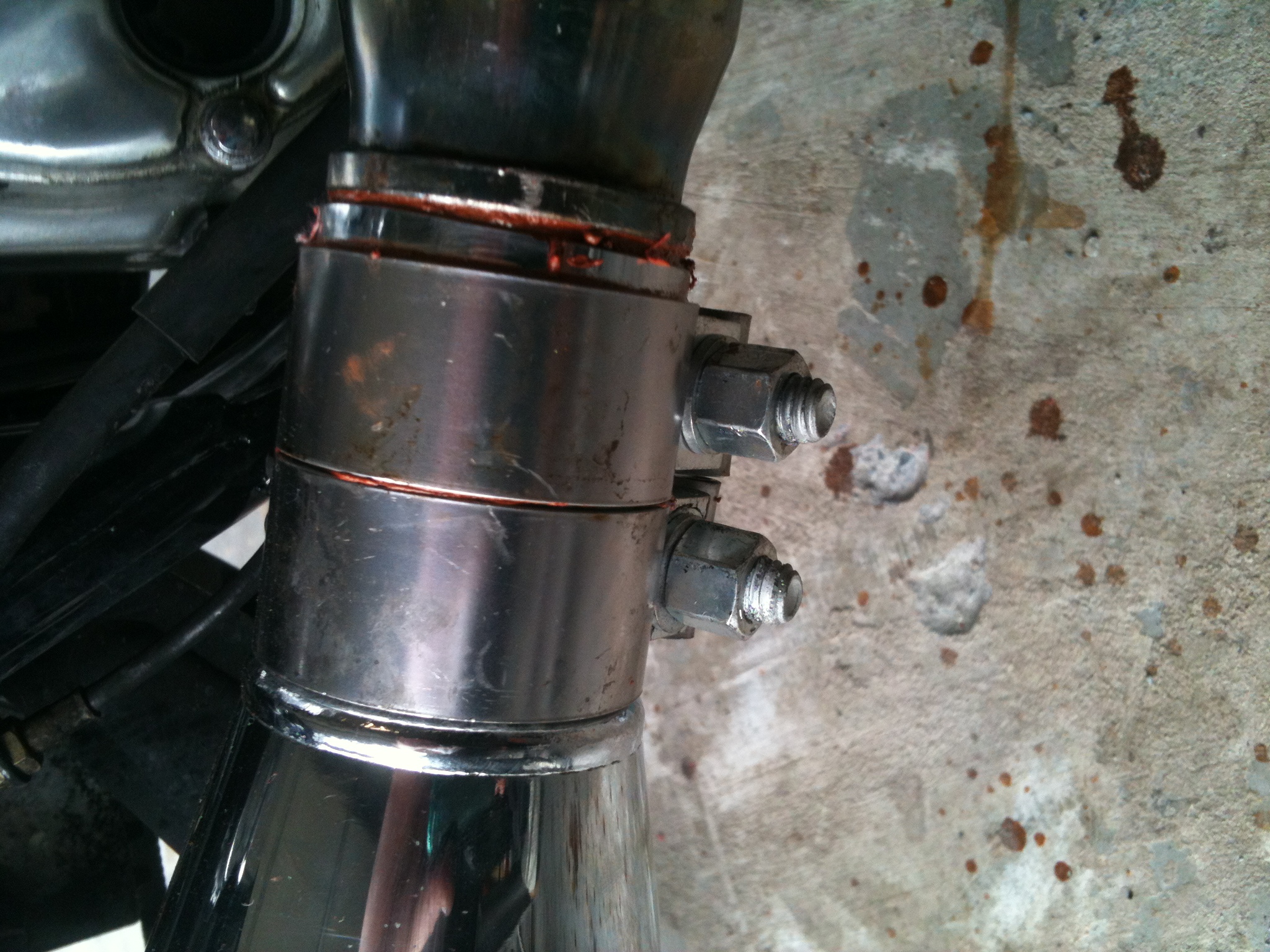 The only problem I can see, is the Copper silicon sealant you used won't do you much good, it's only rated to 750F on an intermittent basis, which is not near enough for a MC exhaust system. That stuff is gonna break down in a hurry, especially if your running your bike hard or at a lean condition.