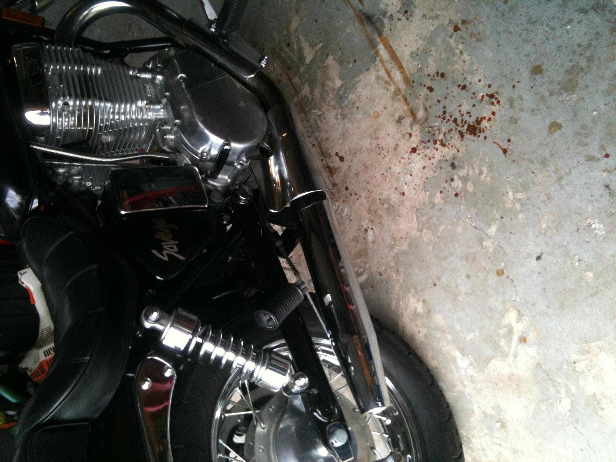 I have just fitted a sportster muffler to my savage and thought some one might find it interesting how i did it. On the choosing HD mufflers tread it says that the sportster mufflers are the ones "you dont want" but here in Australia the more suitable $20 cast offs that you get there are $200 ++ from the dealers here so 2 brand new sportsters form ebay for $50 was what i had to work with. took a bit more thought but it wasn't that hard really. measurements are in metric but you get the idea-