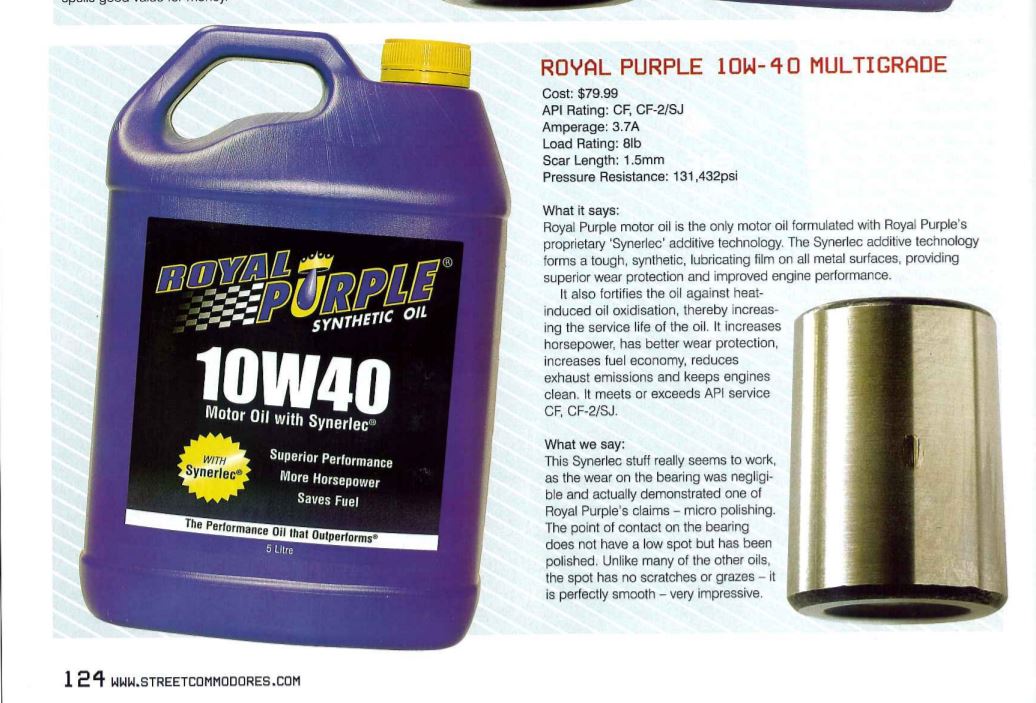 It looks like Royal Purple 10W40 was tested and rated well, see pic attached that was clipped from a pdf I found.