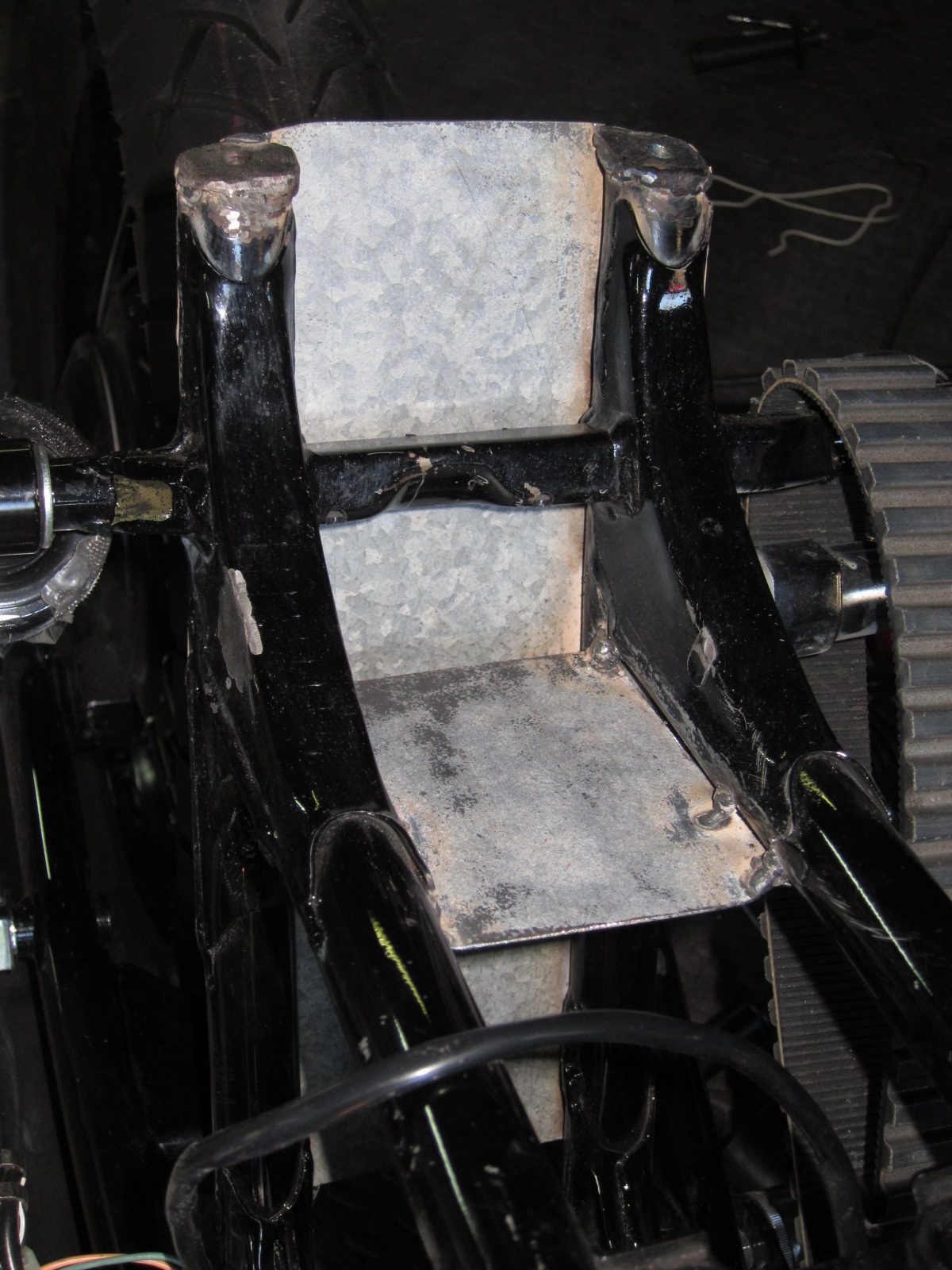 Mine is going to go up top...I welded this galv. metal for a back fender and the little plate for the battery and all the wiring to go...