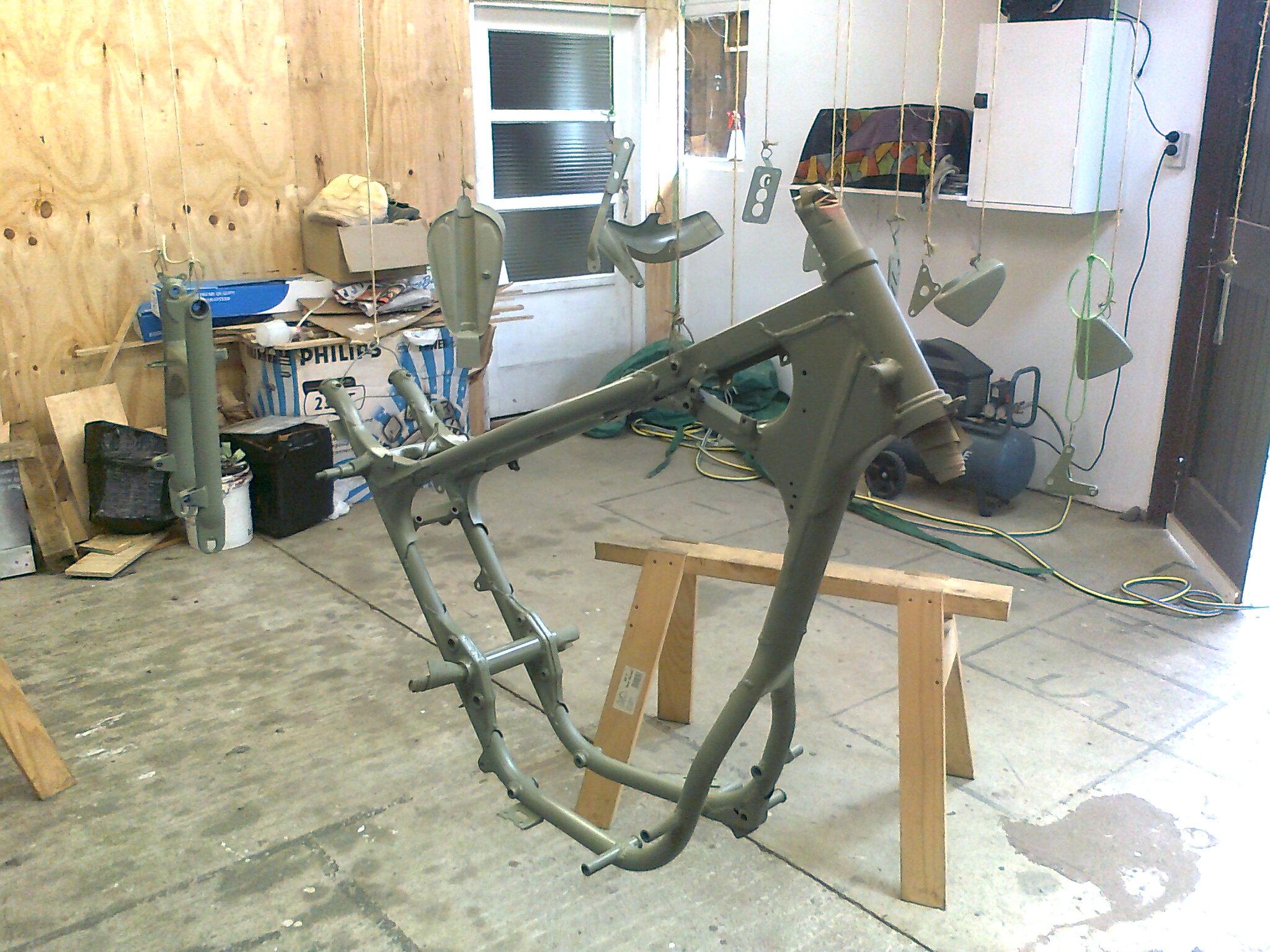 And welded a post on the frame, drilled the front tab and bolted to it: