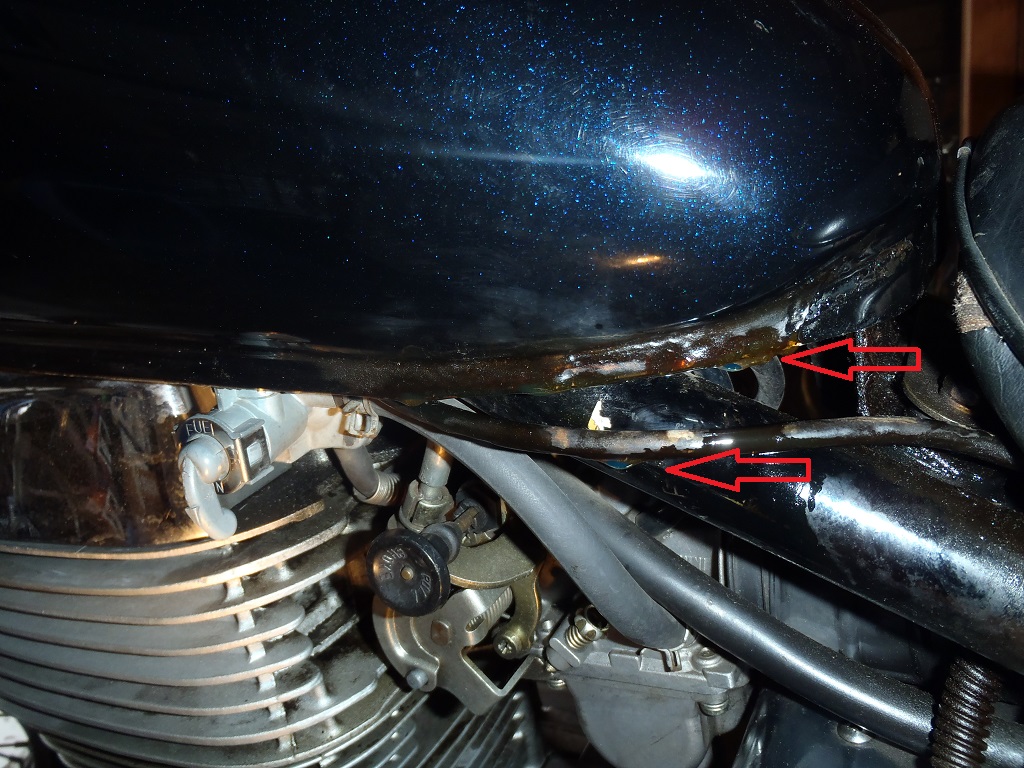 Driving my new to me 95 Savage I saw a small fuel drip in the garage. It comes down a wire, not the fuel line to the carb. Does not appear as a petcock issue as this only is seen after filling up the tank and running. Thinking the old tank has a small leak only noticed after filling up the tank most the way.