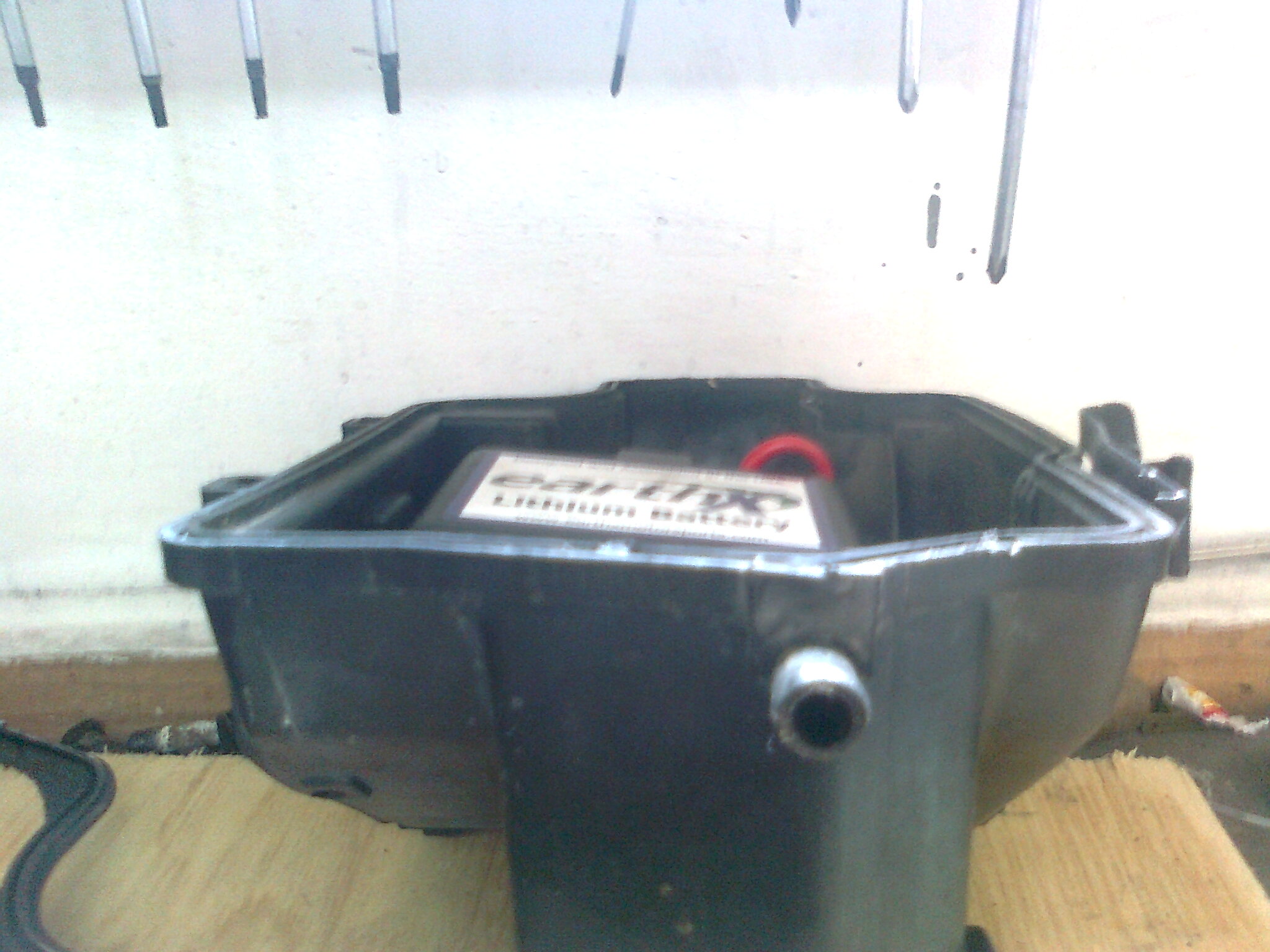 Removed old battery and battery box. Removed air box and opened it up to check if Lithium would fit.