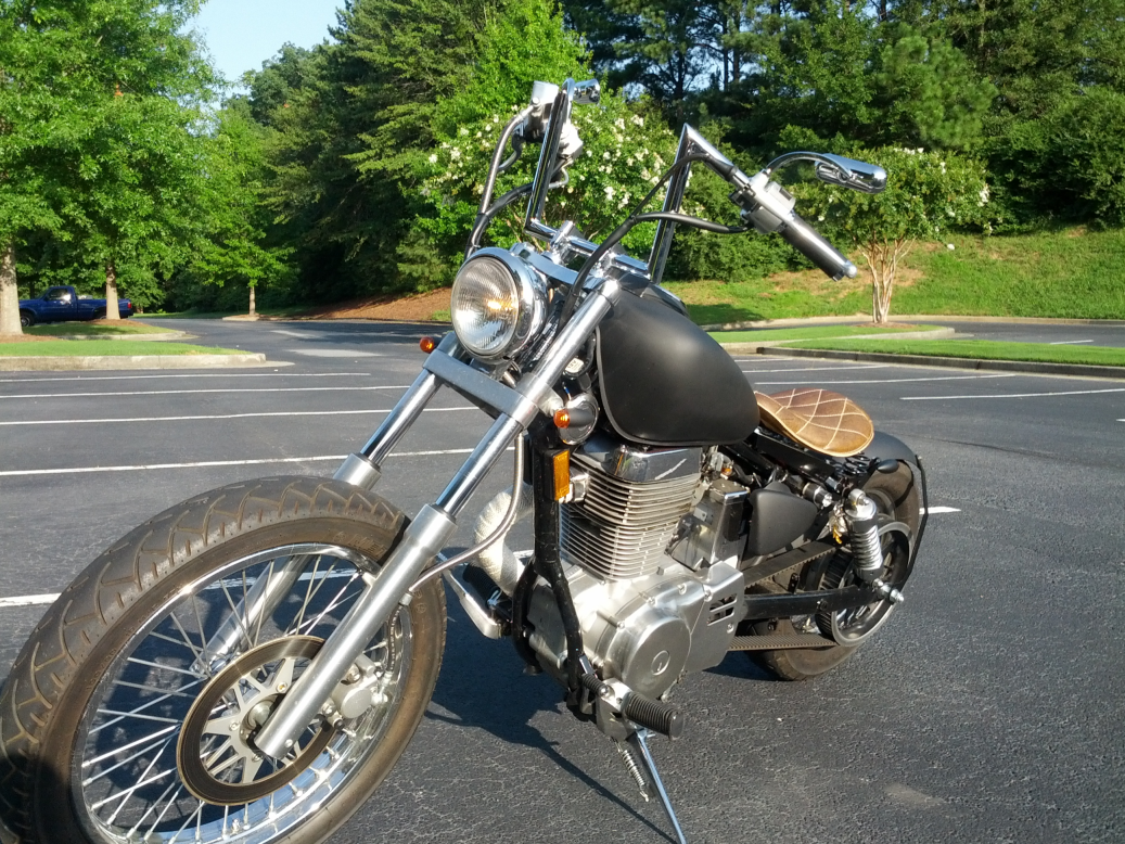 white '07, Raask exh, Corbin seat, slipstreamer shie, Raptor, Routy's fwd controls, Baron tach, Frisco bars, Isogrips, Headlight and taillight modulators, Dial-a- jet, AME 9 deg chop kit, K&N air flt