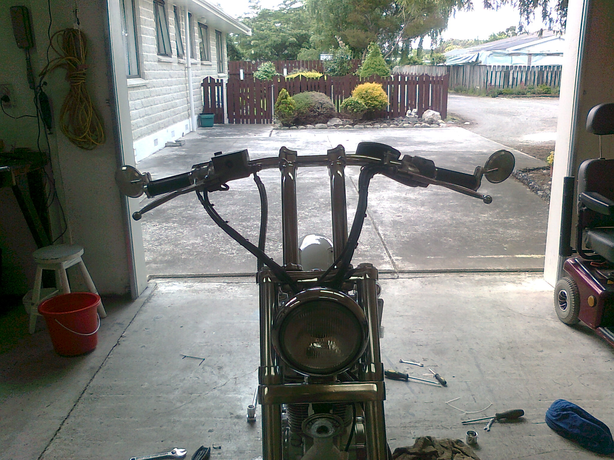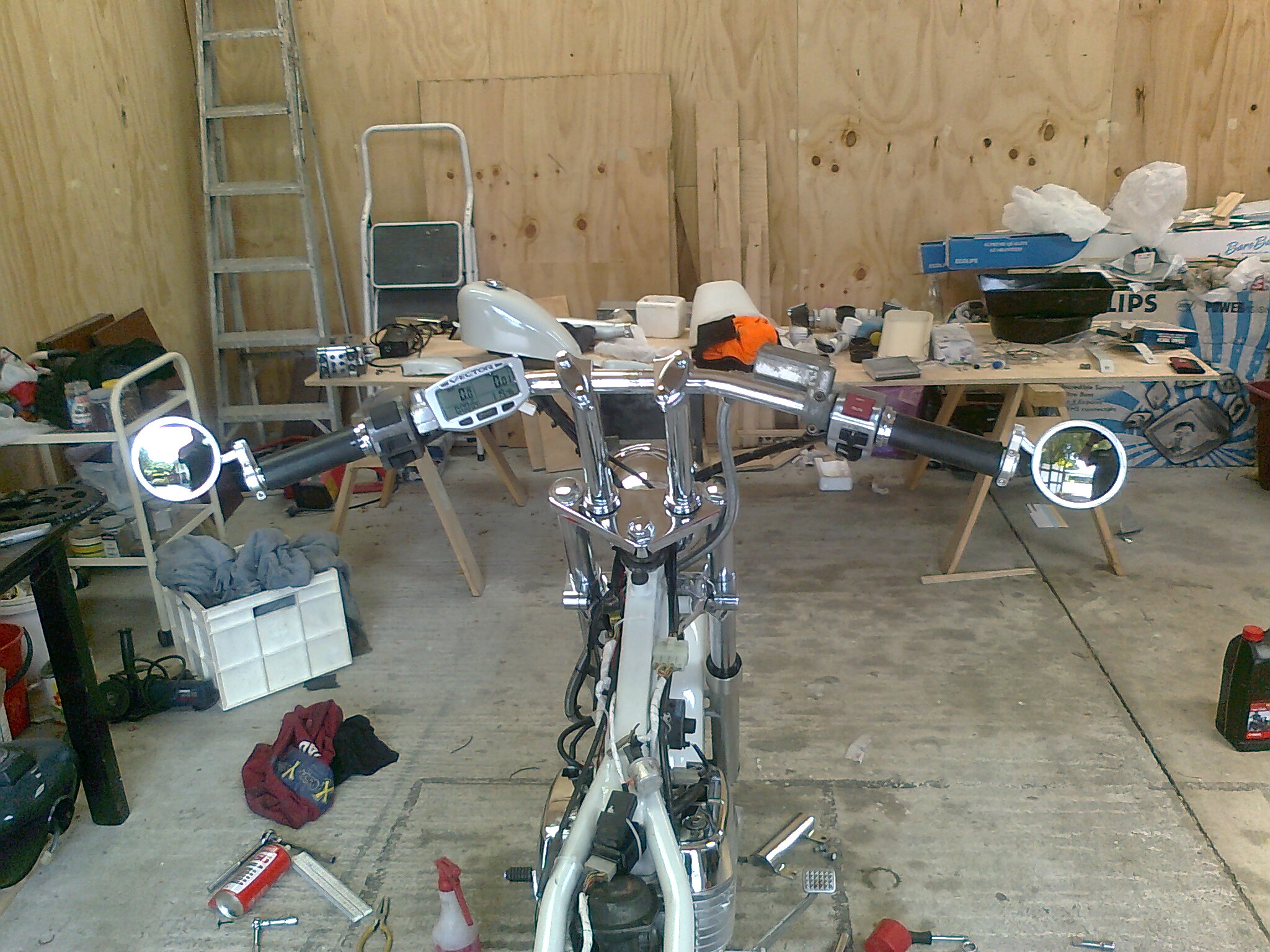 white '07, Raask exh, Corbin seat, slipstreamer shie, Raptor, Routy's fwd controls, Baron tach, Frisco bars, Isogrips, Headlight and taillight modulators, Dial-a- jet, AME 9 deg chop kit, K&N air flt