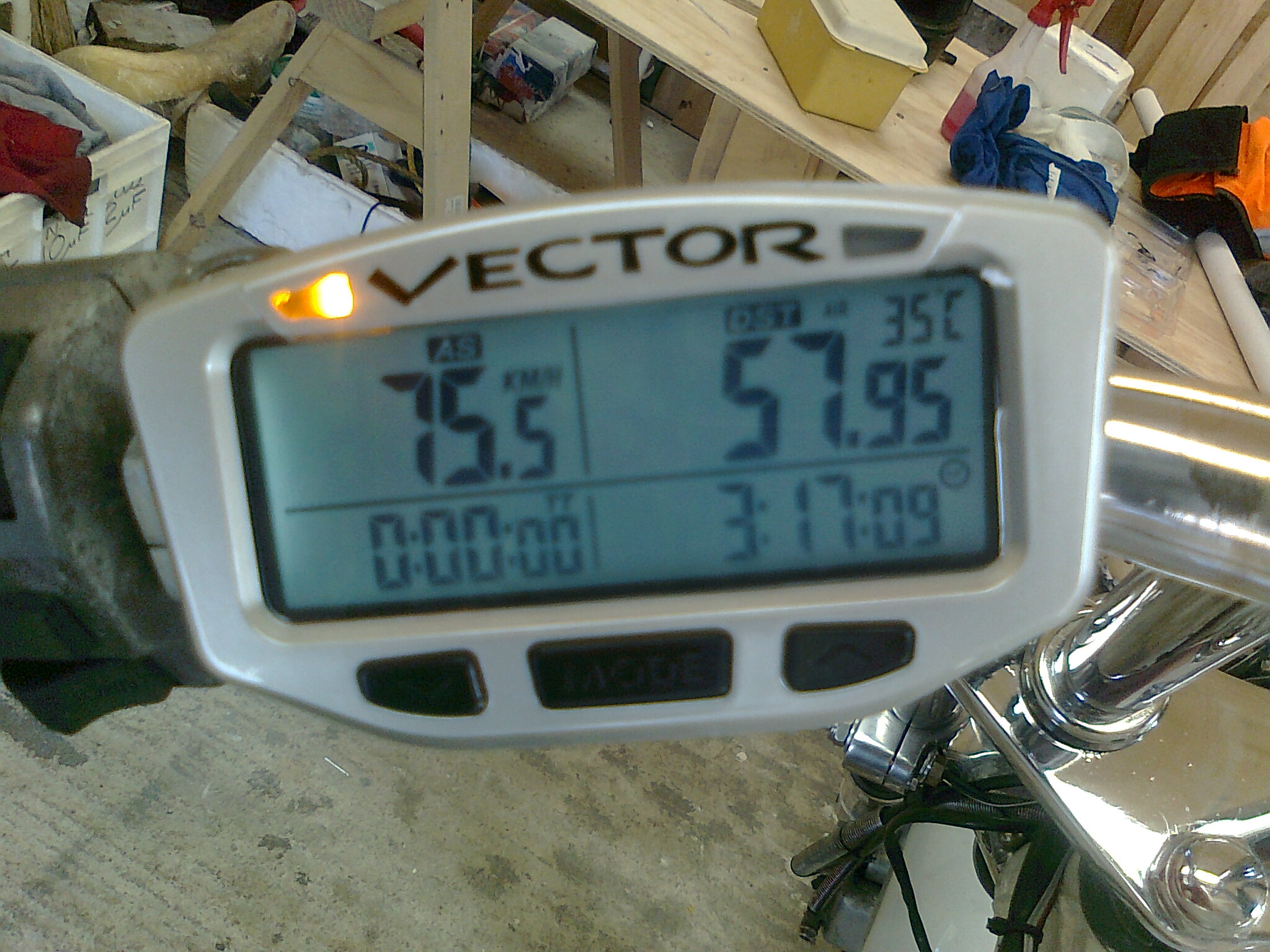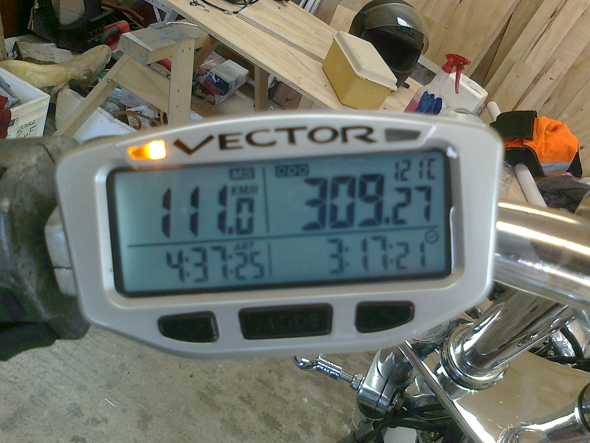 I took my Savage out for a 45min ride on a hot day and the temp reached 132 degrees Celsius [270°F] for those of you who are interested. I will be using a mates GPS tomorrow to check that my speedo is calibrated properly. The pic is very fuzzy sorry, but if you look closely up in the top right hand corner you cant just make out the 132 temp.