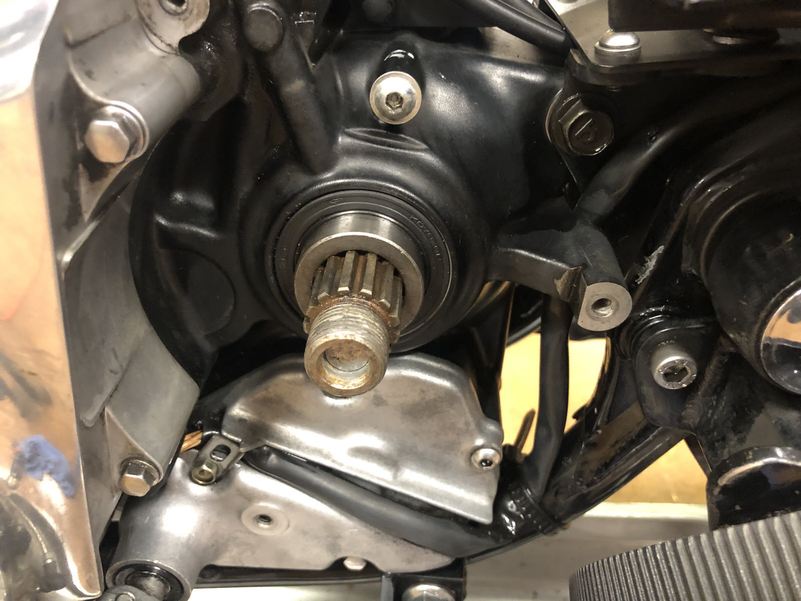 I put it back together with a new seal and O-ring - and just for giggles I took off the Kawasaki front and rear pulleys and put it back together with the stock front and rear pulleys to see where this bike used to be in gearing.