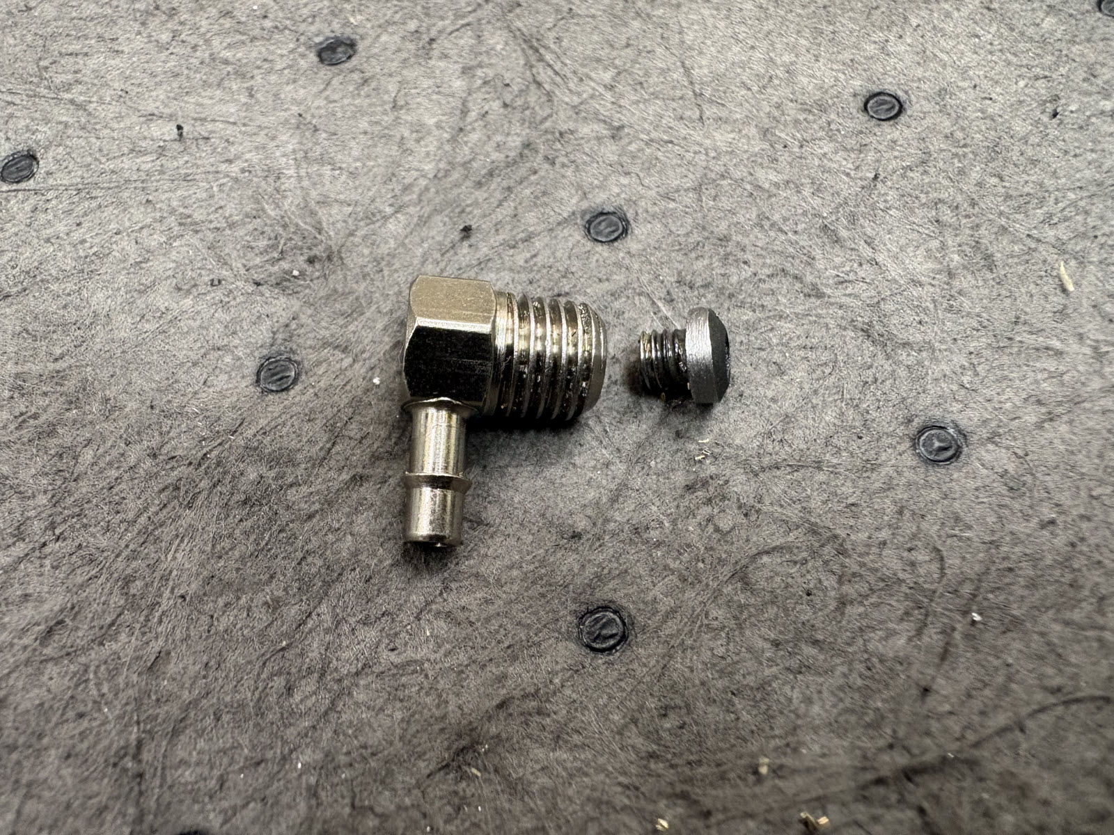 This is what the 90 degree fitting and the drilled screw look like.