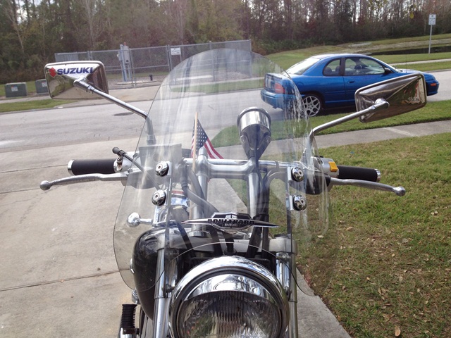 If you are planning on early Spring or Late Fall riding 40-50 degrees F you might want a windshield witch provides hand protection, like Windjammer's Enterprise.   If you are highwaying it a lot, then perhaps the Suzi smaller fairing would be the best choice.  Have fun.
