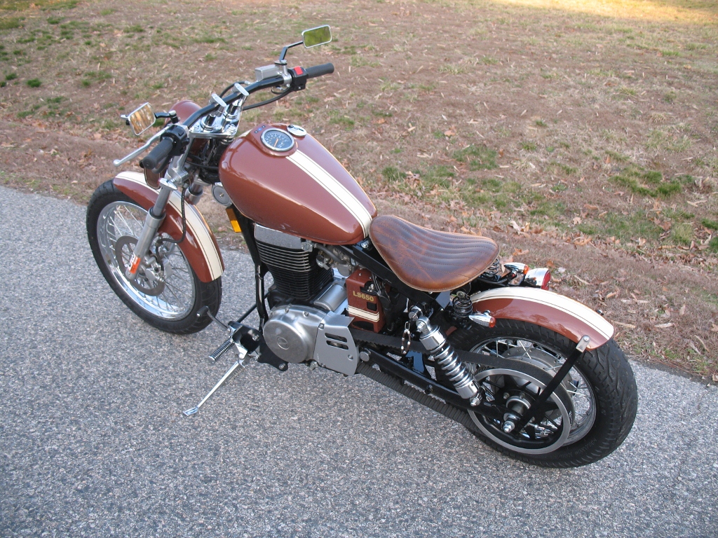 I like the way you did away with some of the chrome(handle bar, battery box, exhaust). I also like the brown upholstery and stripes.