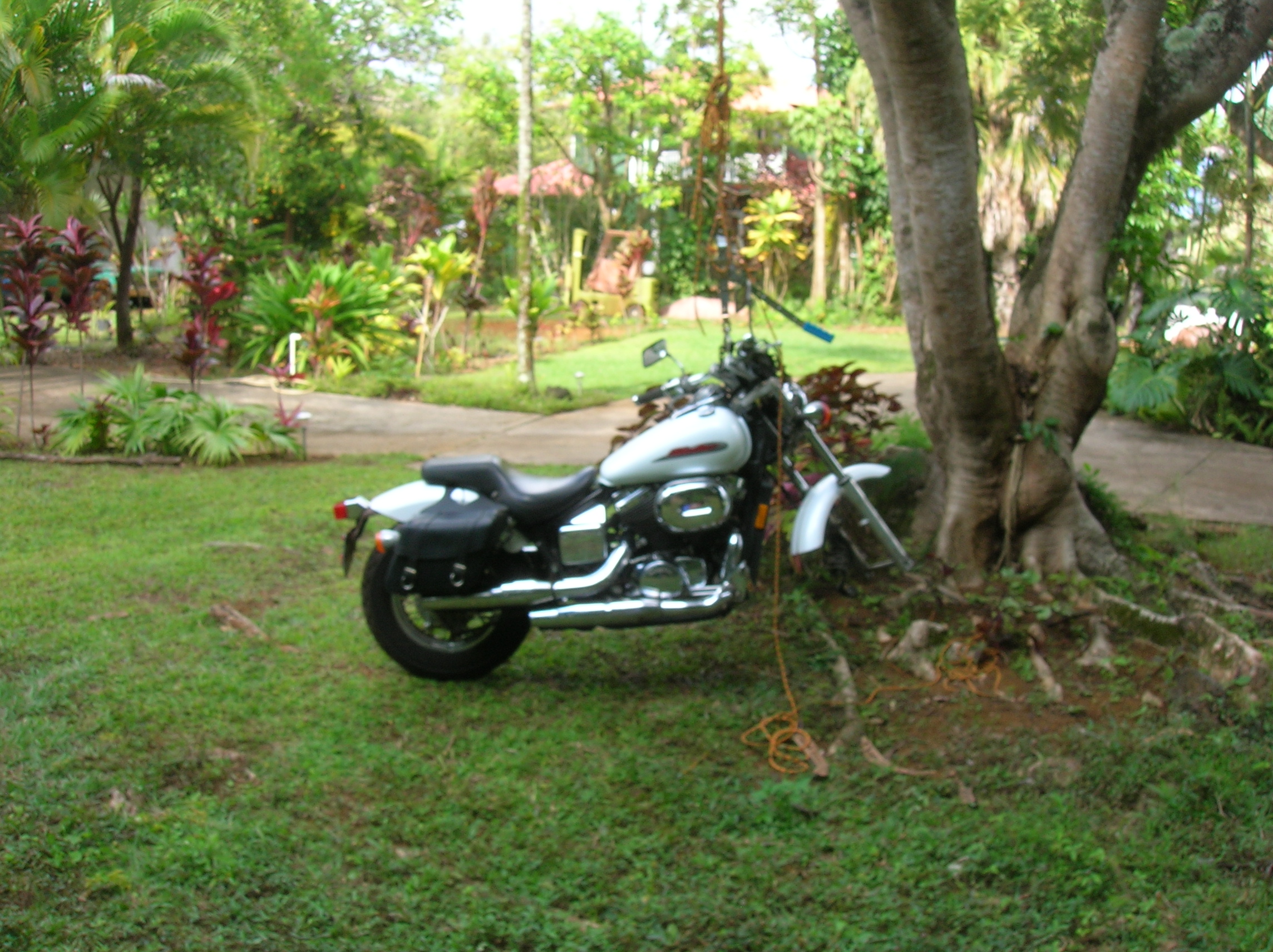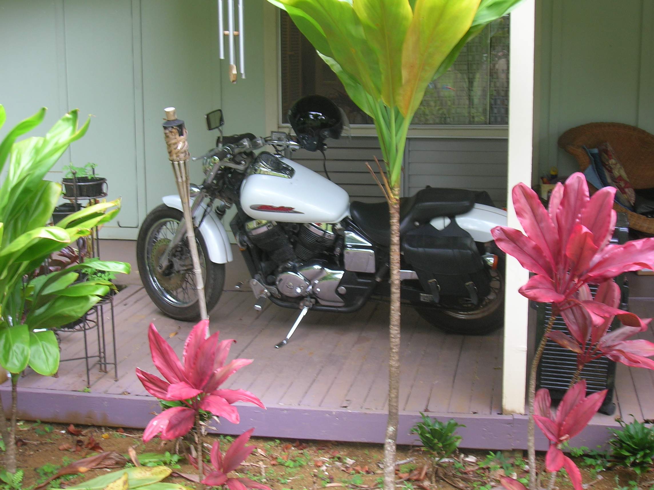 white '07, Raask exh, Corbin seat, slipstreamer shie, Raptor, Routy's fwd controls, Baron tach, Frisco bars, Isogrips, Headlight and taillight modulators, Dial-a- jet, AME 9 deg chop kit, K&N air flt