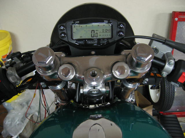 The hardest part of the Trailtech Vapor and dashboard is making a nice mount for it.  They make mounts for the common bikes....that is not us.  The wiring is no big deal.  The temperature gauge just does under the spark plug....or I prefer under a head stud.  The speedo drive just needs a magnet epoxied on the front hub and the sensor just two sided tapes onto the fork leg and the wire just gets taped to the front brake hose.   Both the temp gauge and speedo drive are just plug in connections.  You then need to run a hot wire and ground, and the tach need to be grounded and one wire run to the coil.  There are 4 dashboard lights and they just get wired into the places where the stock light go.....it is just splicing wires.