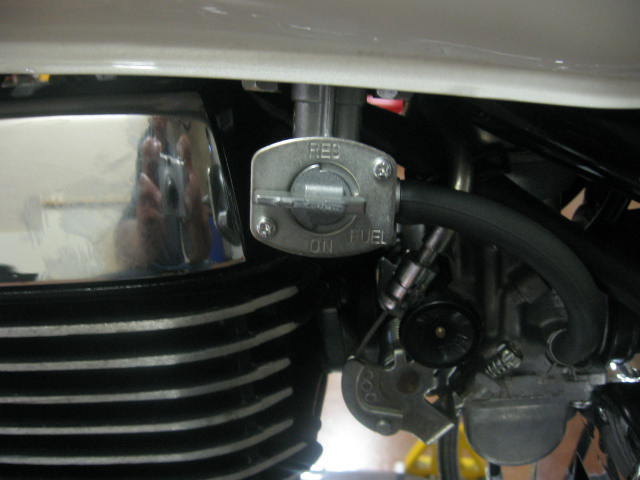 Thing is in the pic above...notice how the fuel line is lower than the original petcock. I had to shim my tank with like 3 thick washers to raise it up to and get my fuel out line from the petcock not to hit the choke knob.