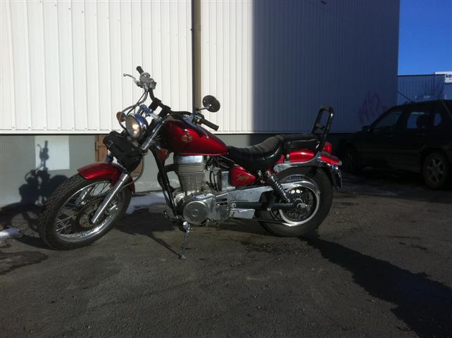 Yellow 1996 Jetted and Dunstall exhaust. Dakota Chubby Bags, Memphis Slim shield,Tank Bib from?? Seat riser mod. More to come!