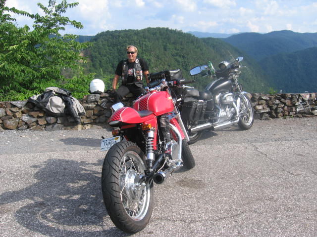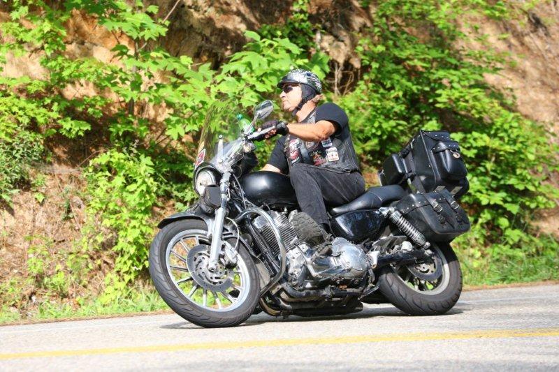 Here is MMRanch on his 883 Sportster about to "Drag some Dyna" on the pavement.  MM was most likely the fastest Harley on the Dragon that day.
