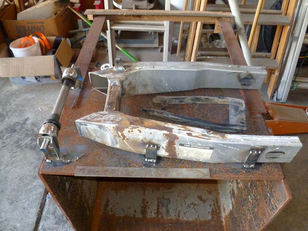 Now the hard part: The LS swing-arm mounts with a smaller bolt outside the frame and the FZR inside. This is completely different which requires cutting off the front end of the FZR swing-arm and completely rebuilding that using only the pivot-ends of the LS swing-arm. There is an important alignment challenge involved plus a lot of 16-guage steel welding to box-in a new swing-arm front end to mate the FZR swing-arm to the LS swing-arm pivots ends.