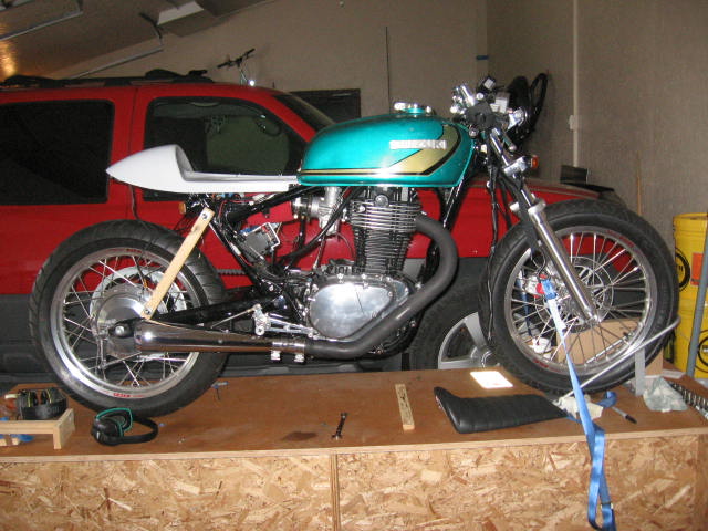 Well I've been starting to stock pile up parts for the winter, but since it was a rainy day this past Saturday I couldn't wait and installed the 13.5" progressive shocks and cut down the belt guard mounts to fit it. What a difference in cornering! Definitely doesn't track as well straight, but makes the twisties much more pleasurable