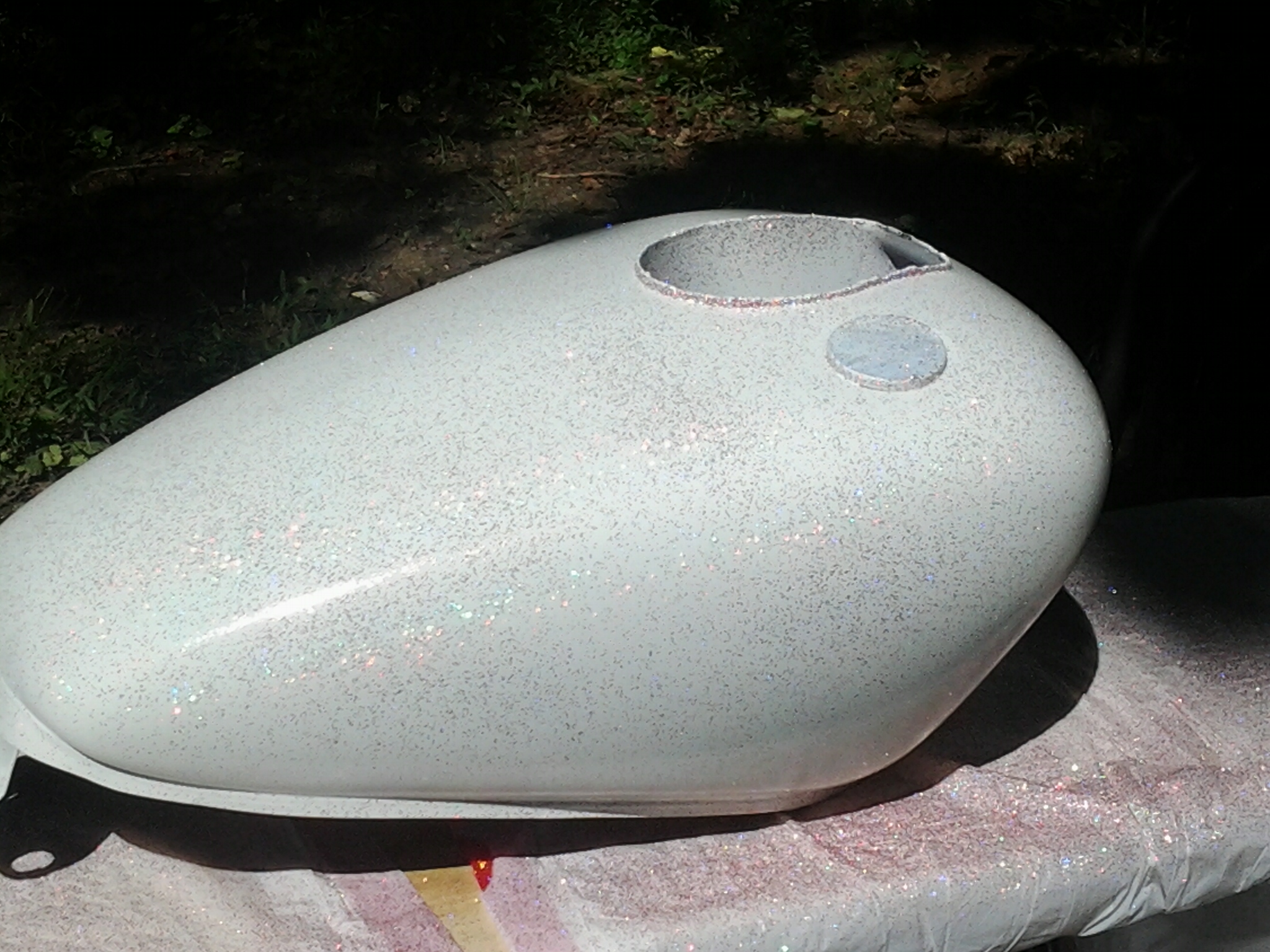I used just the roth rattle bomb paint on the side covers first, Their wasn't flake like they advertised , but only little specks of metallic , I know you can't get big flakes outta rattle can . But ,I was expecting more..