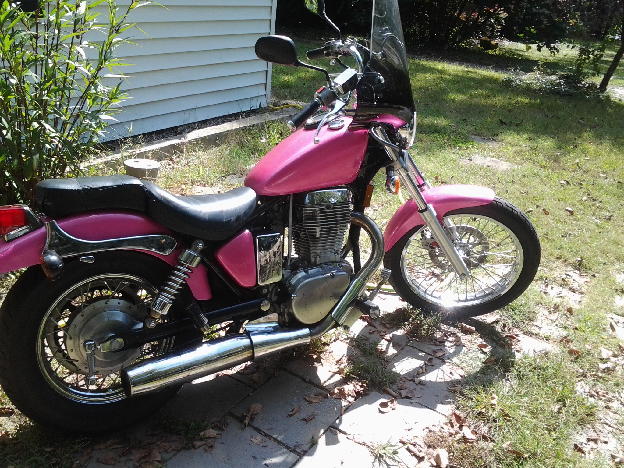I'm all about color.helps that's what I do for a living.I'm doing a Vulcan 800 custom/bobber,it will be raspberry pearl and antique pearl white.Back in my mini truck days my Ranger GT was magenta9closer to pink) and black.Kinda pink now.