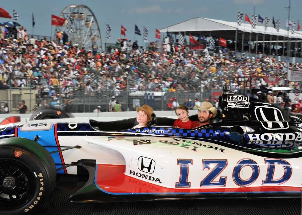And me with my two oldest boys in the Indy village photo op car.