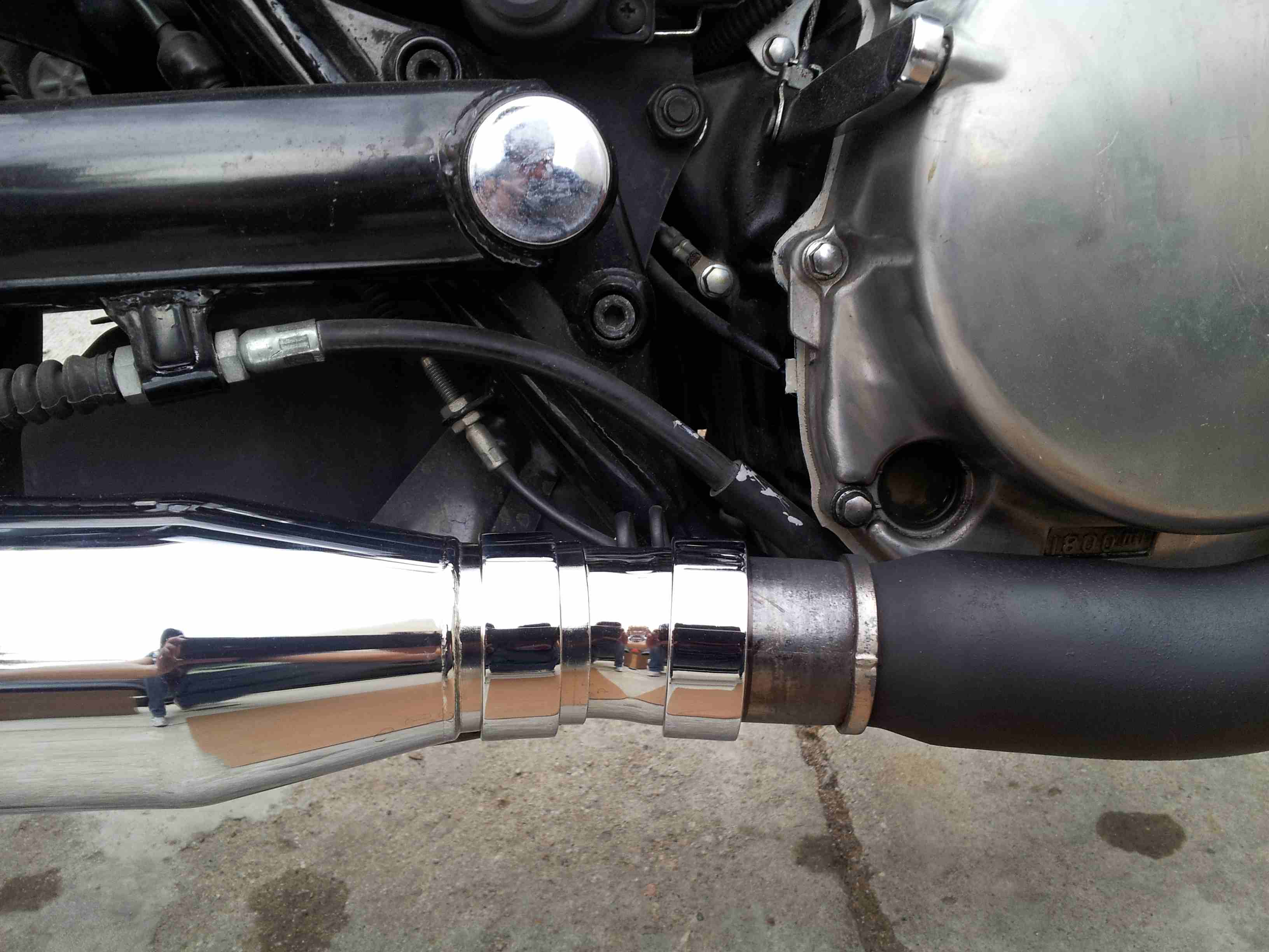 http://www.samsonusa.com/H-109.html). Again, it's 30 bucks for a bent piece of chrome but it covers up the muffler mounting beautifully and is short enough that the 10 degree angle adapter isn't a problem like it would be if you had a 7 inch heatshield.