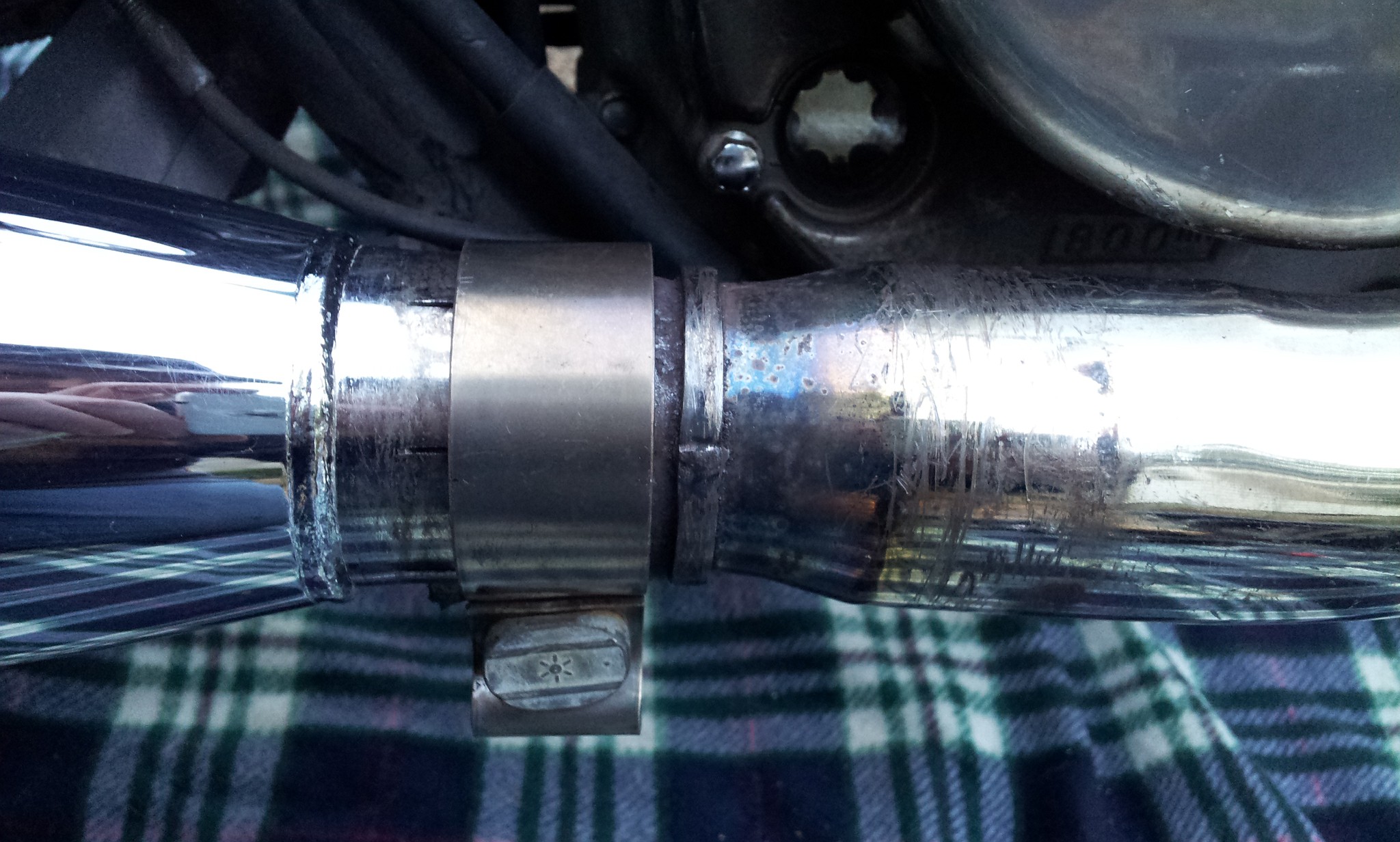 For the love of all that is holy, I cannot get my dyna installed! Purchased the reducer and several clamps but it's just not working. I tried using the largest reducer first; slipped reducer over end of header and pushed it up against the flange of header and then slipped dyna on over reducer but there is such a big gap between dyna and flange of header. Can't push the dyna over header any farther.  See pic below. Then I took reducer off and tried using tin can crush gasket; wrapper it around the end of the header and snugged the dyna up over it and tightened clamp over it.  Exhaust leak coming from header/dyna joint. I could feel the air puff out with my hand. Someone please help! Then I gave up on that and decided to try to put my new handlebar grips on. When I took off the old grip to put the new one on, there was a hard plastic sleeve underneath the old grip. There is also some sort of spacer that matches the old grips butted up against the start/on/off assembly. What do I do?