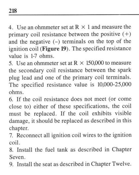 Does anyone know what the resistance readings should be from the coil of my 1988 savage I get about 10k for the secondary and 1.5 ish for the primary is this correct ? cheers