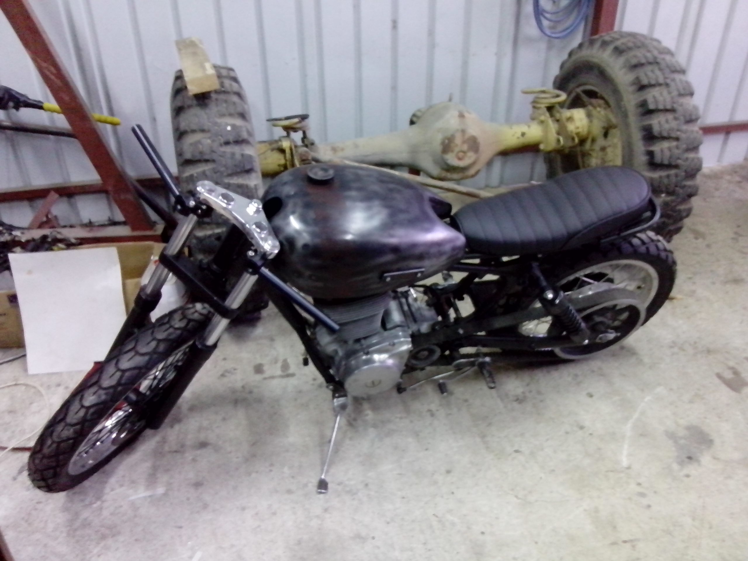 It's a BSA tank from the fifties, so I have been told, took it from a friend that had it laying around, when I asked him if he had a tank for a project. If there is an anorak that knows to what BSA model belongs this tank will make me a favor!!! I have searched in the internet almost the whole BSA bike range and find lots of similar tanks but not the same....
