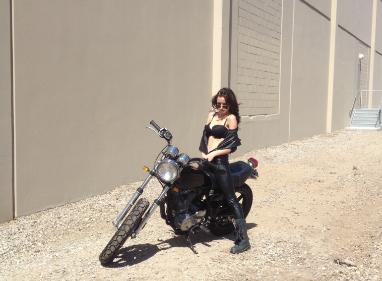 Seat, tail piece, electrical box all modified. Girl is more interesting than the bike...  Grin