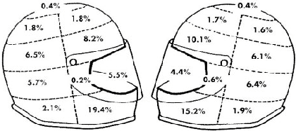 The problem with looking at the stats on the seriousness of injuries with and without helmets on is that there is really no way of knowing what would have happened with the other choice in effect.  It is possible that someone that was wearing a helmet would be injured less without the helmet on, just as it is possible that someone that wasn't wearing a helmet may have been better protected with the helmet on.  Same with other gear, though some is pretty obvious.  (Like I said above, people wearing shorts and T-shirts for example, if they hit the asphalt they are gonna get some serious road rash.)