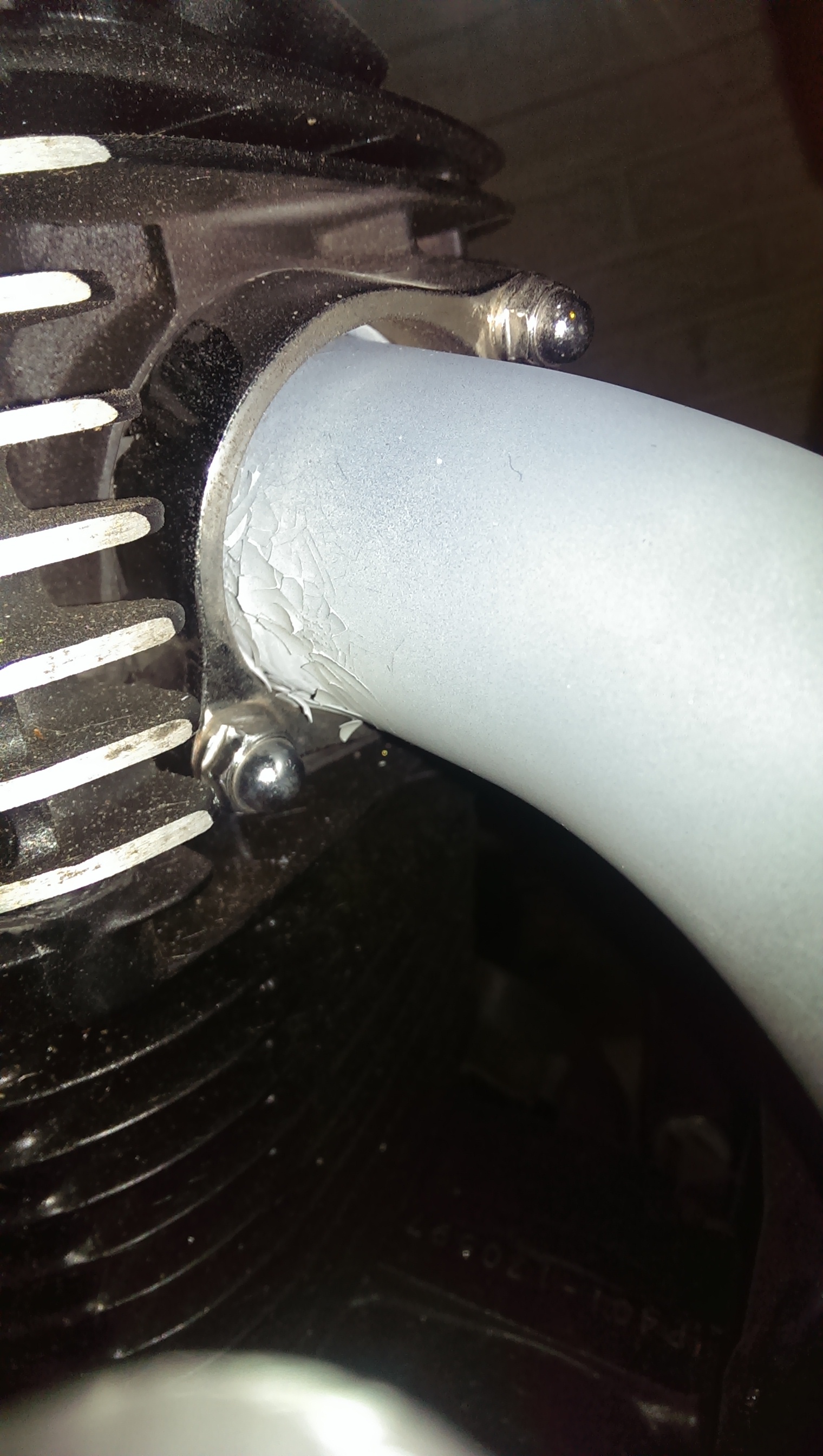 Well I'm pissed...  The fading of the color only went a few inches from the base of the engine,  and I was not happy,  but it appeared to have fully cured well.   It was dark and so I'm not for sure on this,  but after my final curing and letting it cool I went for a ride around the block,  and I didn't really crank it to much but when I got back I took a high powered flashlight to it (up until then I had my patio light and a low powered head lamp.   Well upon inspection of how faded the pipe got up top I came across a large amount of chipping and cracks.   I can't be for sure of taking it for the ride then instead of waiting until today for a ride is the cause,  or if it was just like that and I just didn't inspect it closely enough....   Regardless,  that's the final straw,  I'm stripping it all and getting the refund and having it done professionally.   I know I could use BBQ paint as people have pointed out,  but they also say that only has a life span of a few years maybe.   So given the fact that after a refund I'll be spending like $30 for a professionally done ceramic coating,  I'm gonna go that route.   Disappointing,  but I'm not wasting any more time on the header.   I want to start my fiberglassing projects,  starting with a custom under engine air scoop,  then seat,  then tank.