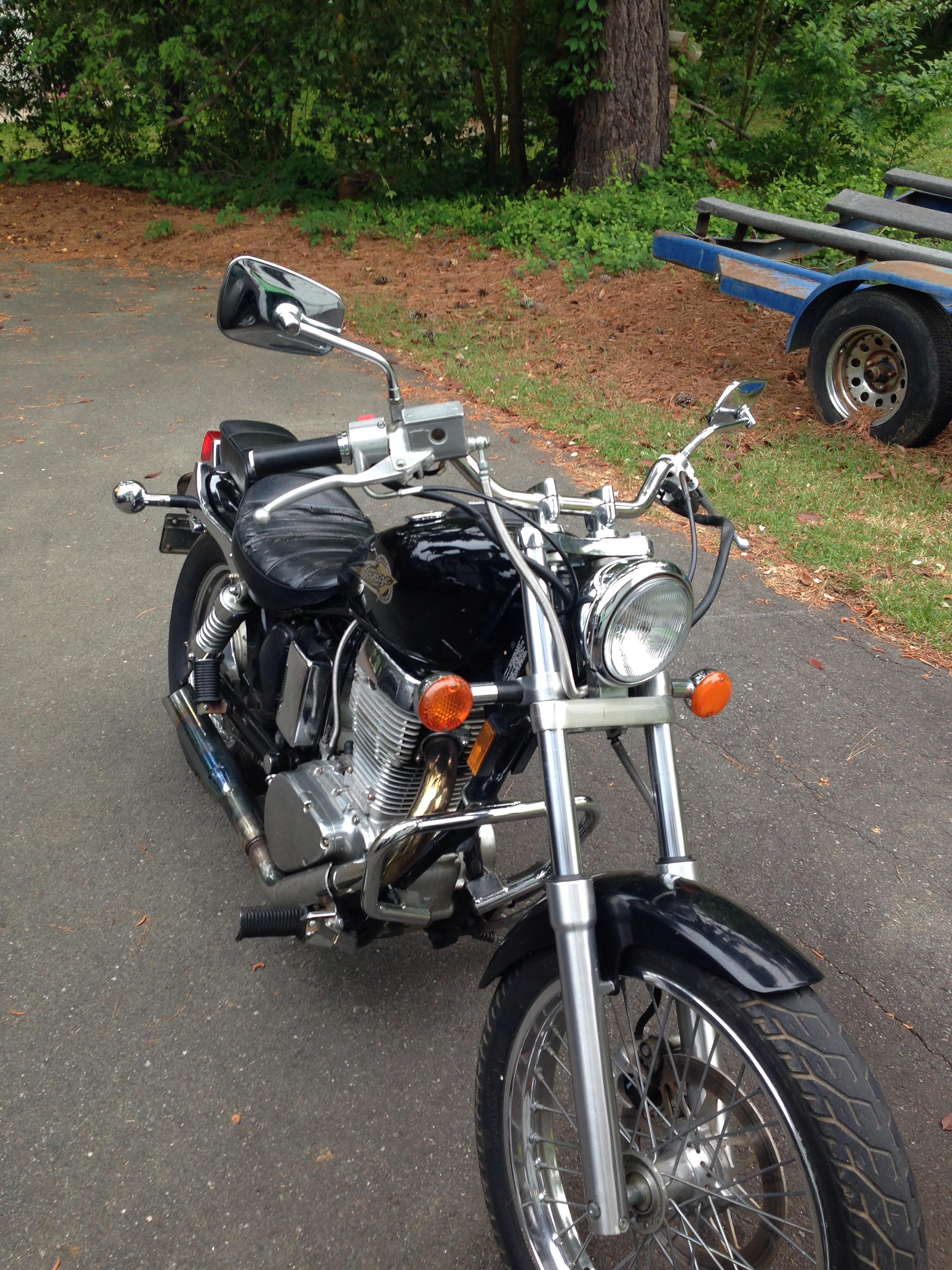 I just traded my Plated 94 KDX 200a 99 Suzuki Savage (LS650 or S40). After coming from the dirt world with the KDX, I don't believe i can give it up cold turkey. So I am going to build a street tracker with the Savage. Here she is how she sits now.
