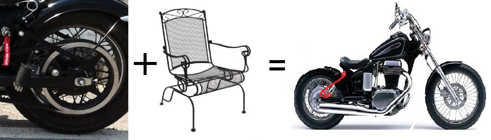 I understand that it probably would ride like a pogo stick, but that's not the point.  We're not going for the feel of a cadilac here, just an alternative to a hardtail.  With that being understood, the topic of creature comforts went out the window a long time ago.  What I'm going for is the look of a rigid frame, but won't rattle your teeth loose.  And before anyone says "HD has done this, it's called a 'Softtail'..." I know, but that kind of conversion would take a crap ton of frame modification.  My Idea incorporates the shock mounting points, so it would be a direct bolt-on replacement, and could easily be changed back to shocks without any mods to the bike itself.